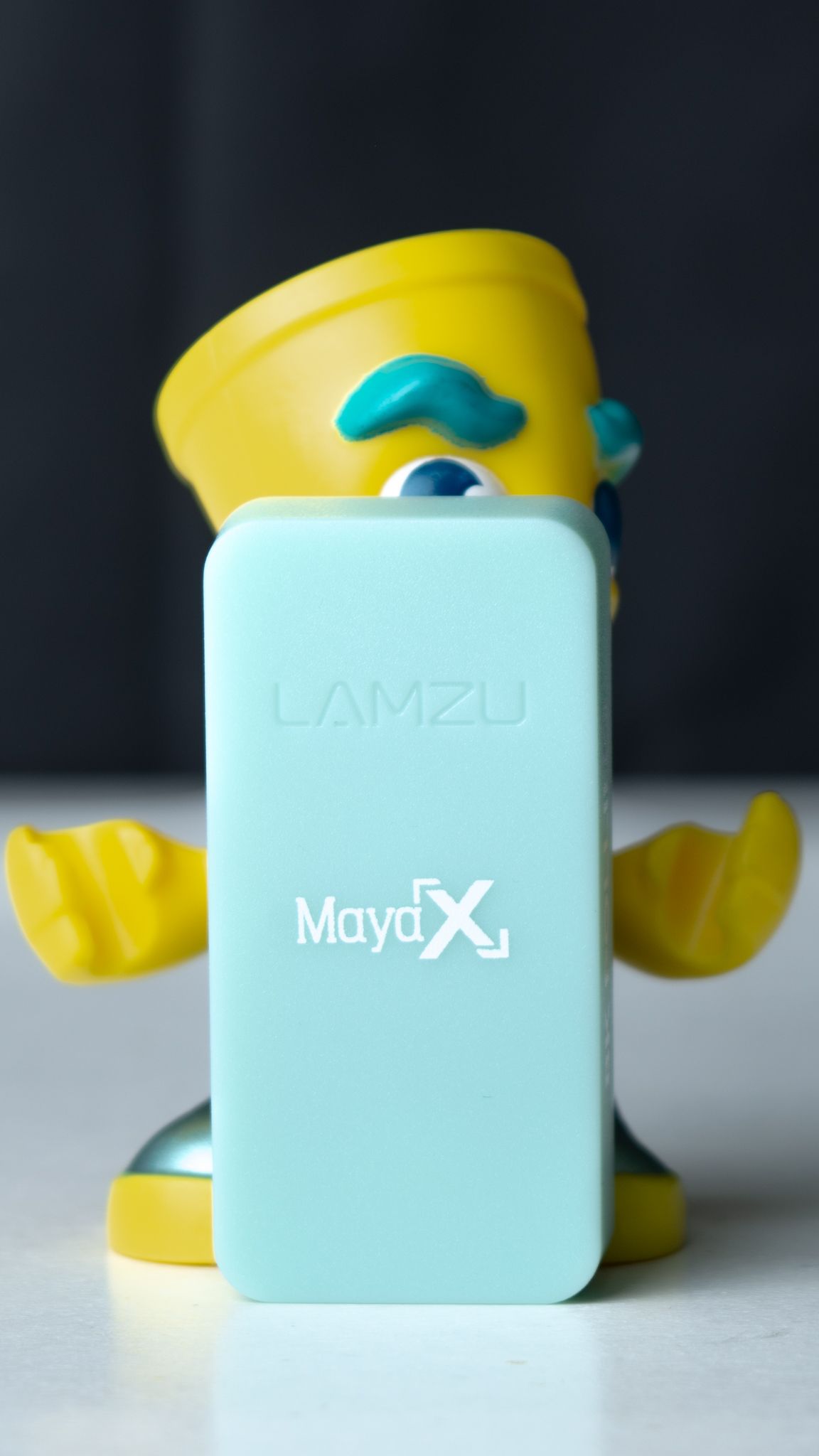 ويأتي الجانب الأمامي عبارة عن جزئين حيث الأول يحتوي على نص شكل الماوس مع اسم Aimplas والأسفل يحتوي على وصف الماوس كونه ذات Polling Rate 8K وكونه أيضا Wireless ذات وزن 47 جرام فقط، بينما الجزء الآخر يحتوي على اسم الفئة Maya X ووزن الماوس و DPI كونه 30000 مع أسفل الجانب اسم الشركة LAMZU.