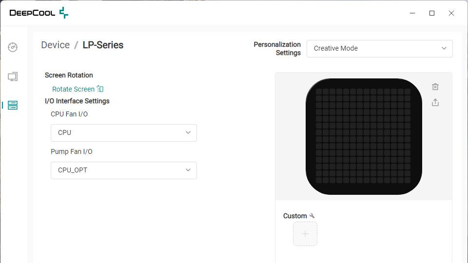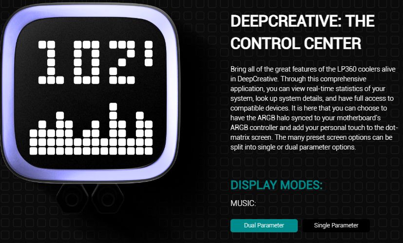 لدى الشاشة ثلاث ميزات رئيسية وهم ( Creative Mode-Music Mode- Power Guardian- Temperature Guardian – Load Mode) لكل منهم مميزات أخرى ويتم التحكم فيهم من خلال DeepCool CONTROL SOFTWARE DeepCreative، عن طريق اختيار المناسب من واجهة البرنامج: