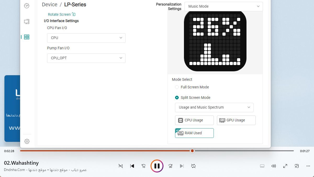 وتميزت أيضا بإمكانية إظهار شكل تشغيل الأغاني مع استهلاك الكارت و المعالج ودرجة الحرارة أو الأغاني فقط.
