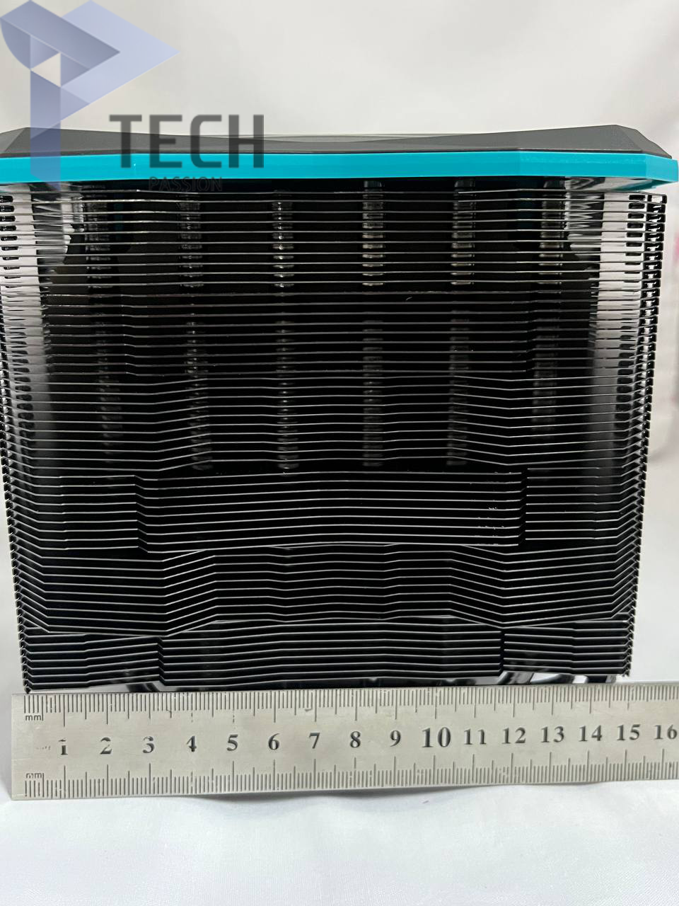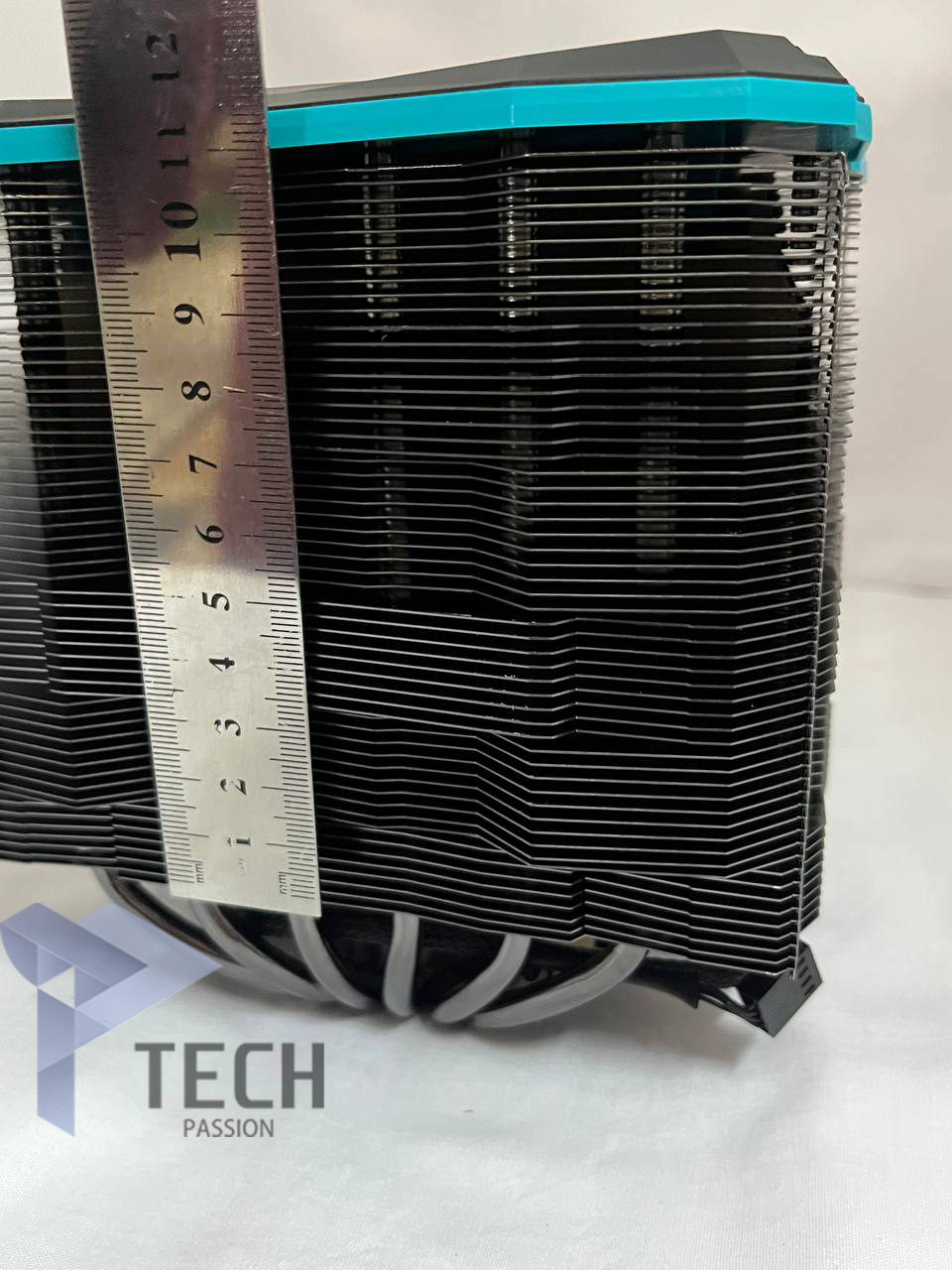توضح الصورة طول المبرد بداية من سطح المبرد حتى الأسفل قبل الأنابيب الحرارية و بلغت طولها حتى الغطاء البلاستيكي حوالي 11.5 سم
