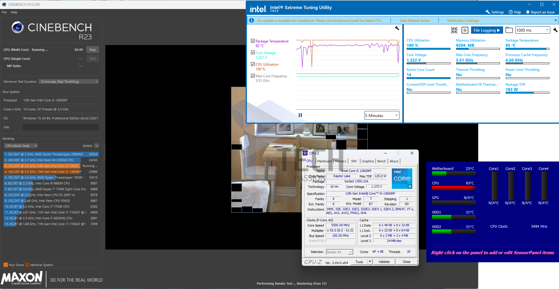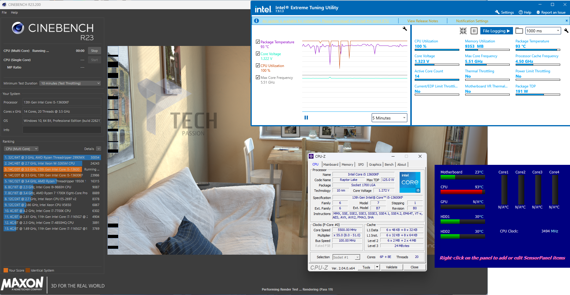 سنتناول في هذا الجزء الفرق في درجات الحرارة في عملية كسر سرعة المعالج باستخدام برنامج CINEBENCH R23 حيث يعتبر البرنامج مقياس قوي ودليل على قدرة المعالج على تحمل الضغط الشديد.