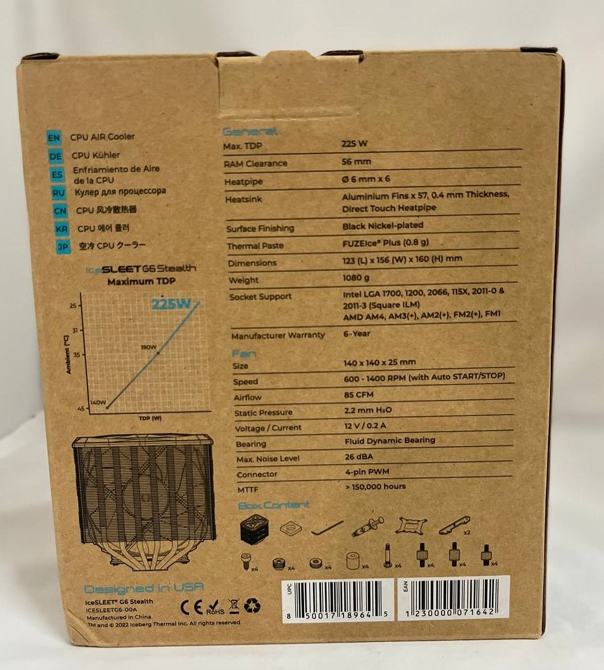 يتكون صندوق المبرد الهوائي IceSleet G6 Stealth من صندوقان من الكرتون القابل لإعادة التدوير: