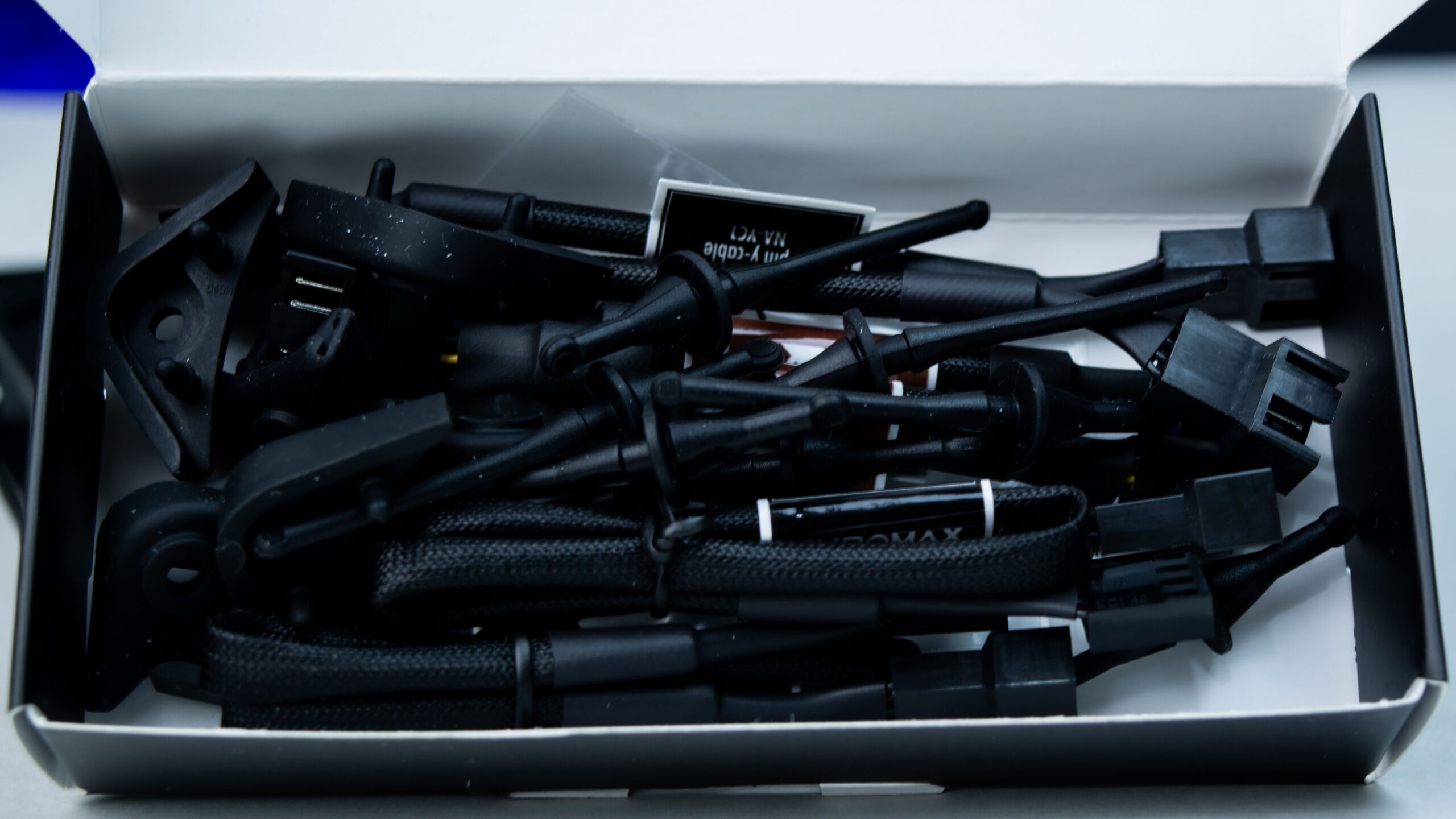 بينما يحتوي صندوق الأدوات على الملحقات منها كابل ذات حرف Y الذي يعمل على ربط أكثر من مروحة في نفس الوقت، مع تواجد بعض القواعد للمروحة طبقا لـ المكان التي سيتم تركيبها فيه، مع تواجد المسامير، مع تواجد بعض الكابلات الخاصة بـ تقليل الضوضاء، وإطالة سلك المروحة لتسهيل عملية التركيب.
