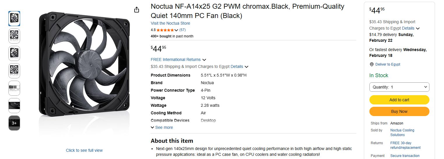 عايز مروحه واحده noctua A14x25 g2 chromax