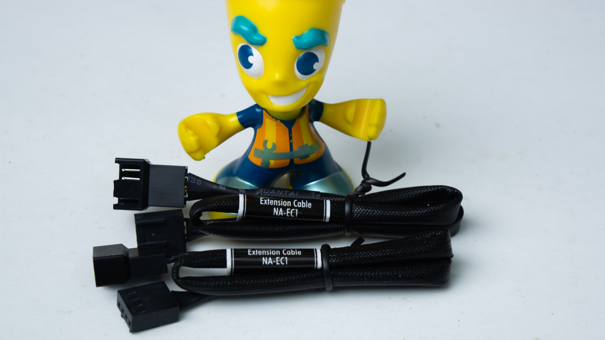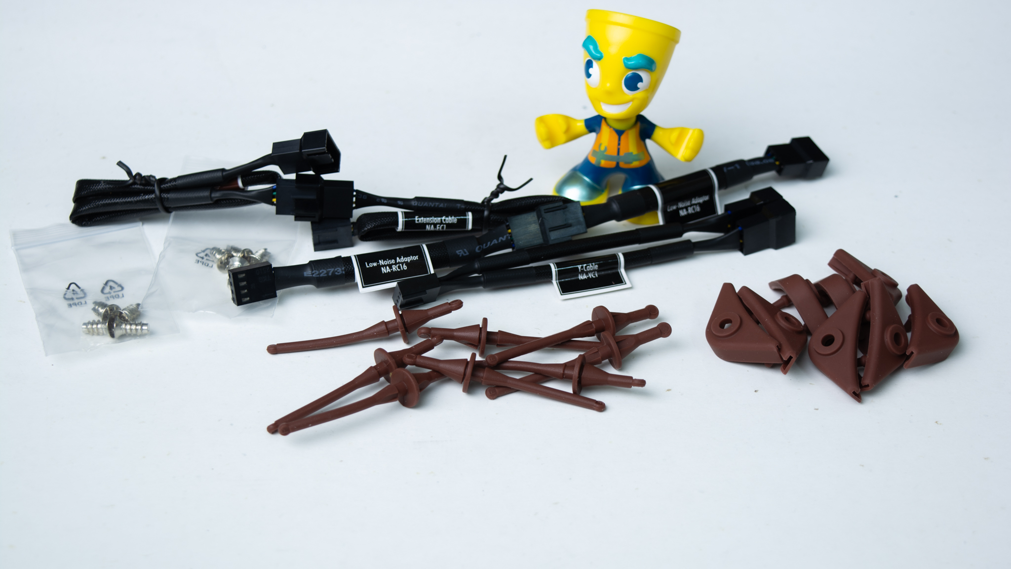 بينما يحتوي صندوق الأدوات على الملحقات منها كابل ذات حرف Y الذي يعمل على ربط أكثر من مروحة في نفس الوقت، مع تواجد بعض القواعد للمروحة طبقا لـ المكان التي سيتم تركيبها فيه، مع تواجد المسامير، مع تواجد بعض الكابلات الخاصة بـ تقليل الضوضاء، وإطالة سلك المروحة لتسهيل عملية التركيب.