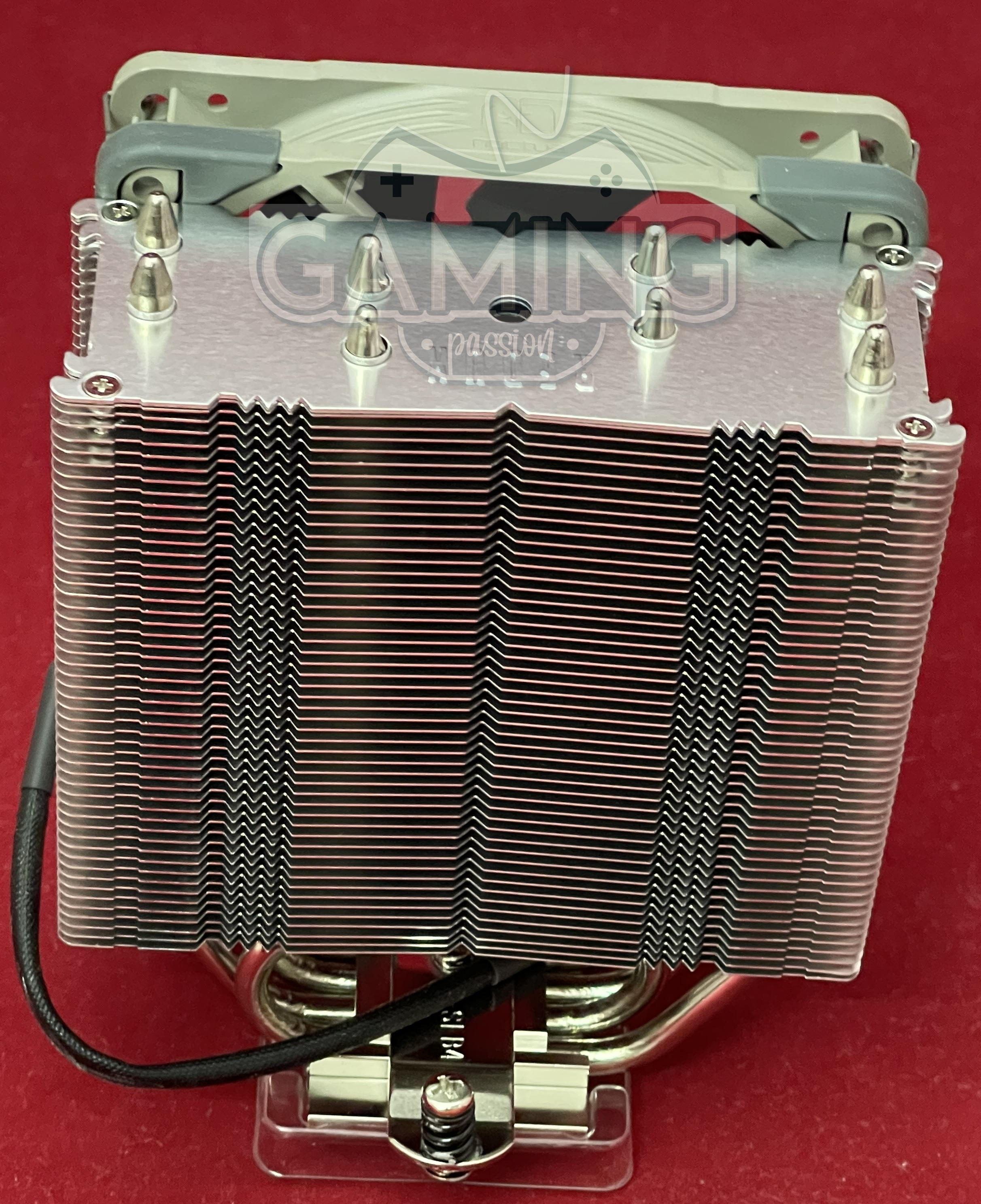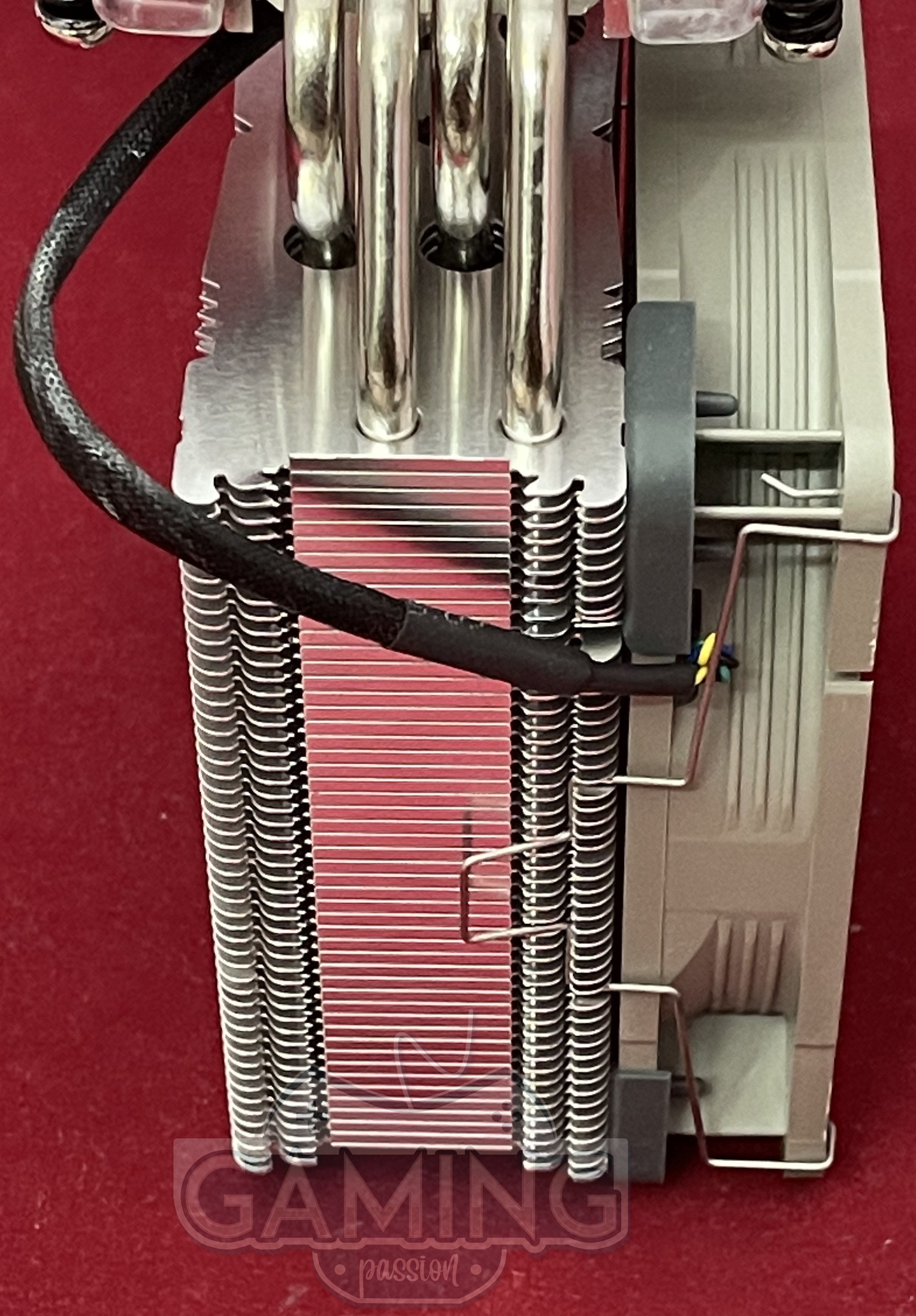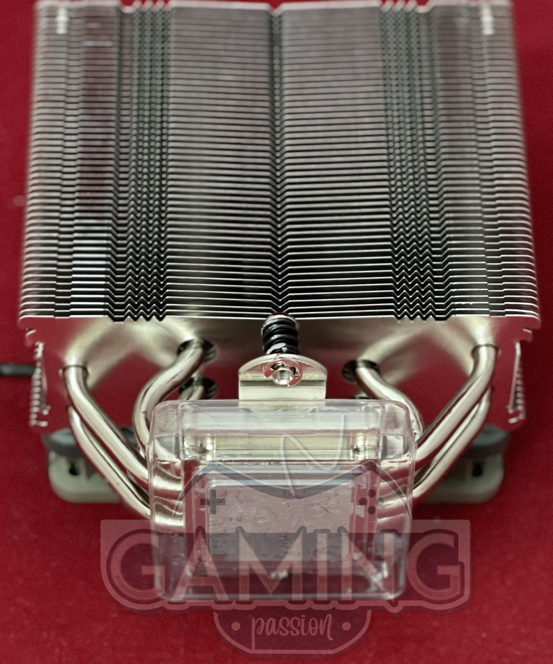 - توضح صورة مراجعة المبرد الهوائي Noctua NH-U12s Redux انه يتكون من أربع أنابيب نحاسية التي تكون مطلية بالنيكل، والتي ترتبط بالبرج لو تم تقسيم البرج إلى جزئين بالتساوي