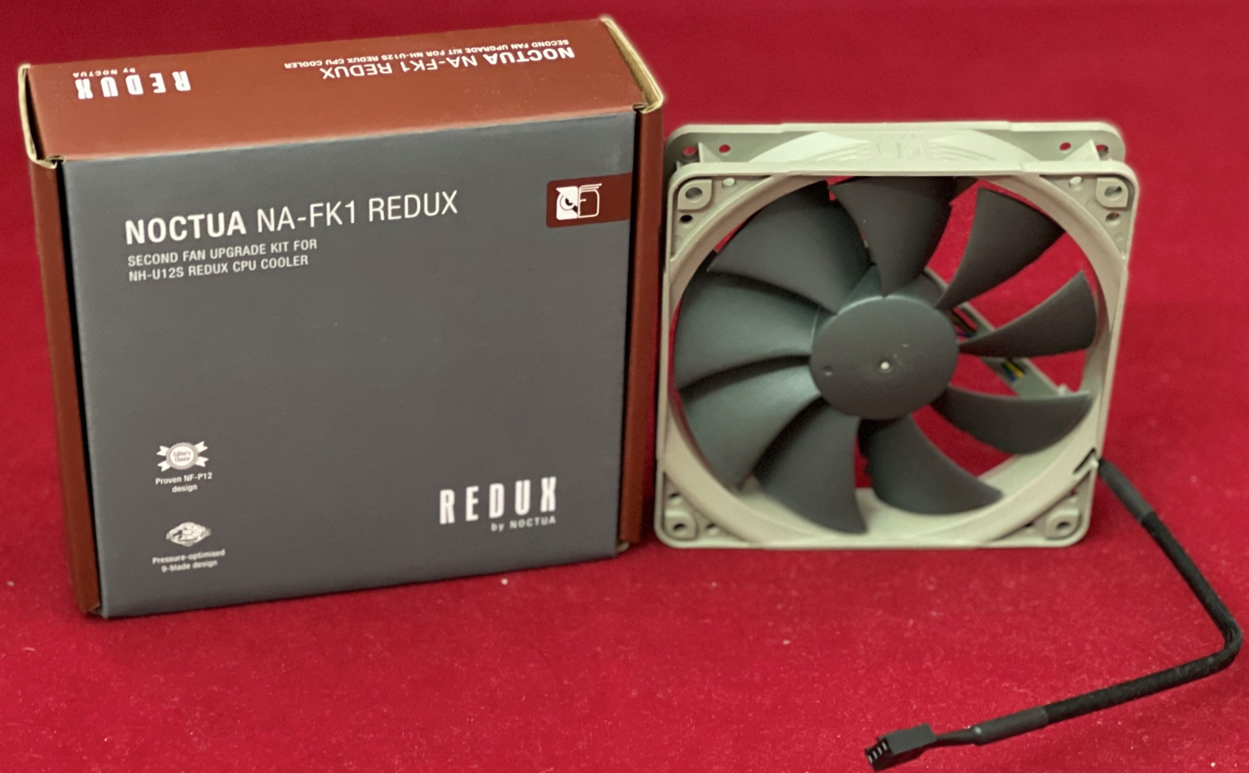 - قامت شركة NOCTUA بدعمها لنا بمروحة خارجية من أجل تبريد أفضل، تاتي المروحة تحت اسم NOCTUA NA-FK1 REDUX.تأتي المروحة منفصلة بسرعة 1700RPM، ويحتوي الصندوق الخاص