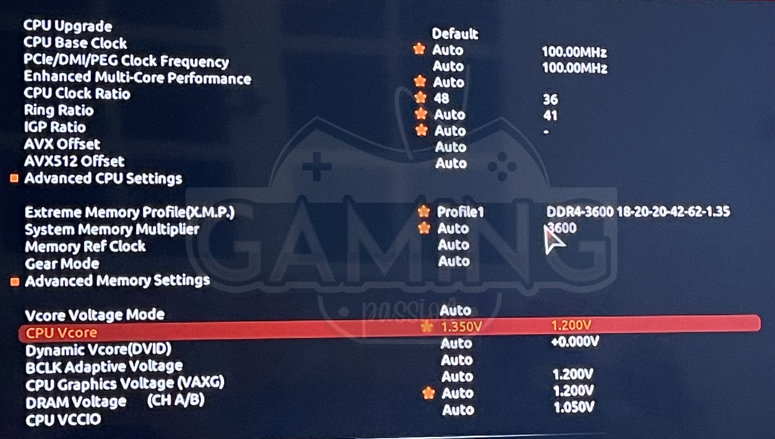 تمت كسر سرعة المعالج على 8 انوية و 16 خيط وبدأنا بداية من 4.8GHz مع فولت وصل الى 1.350V و كانت درجة الحرارة بعد الضغط لمدة ساعتين وصلت إلى 67 درجة وهذا معقول جدا