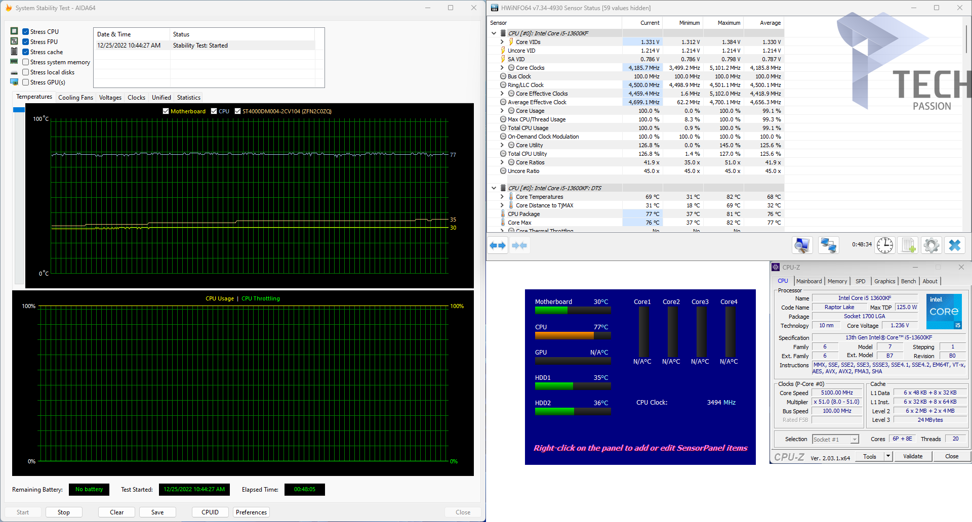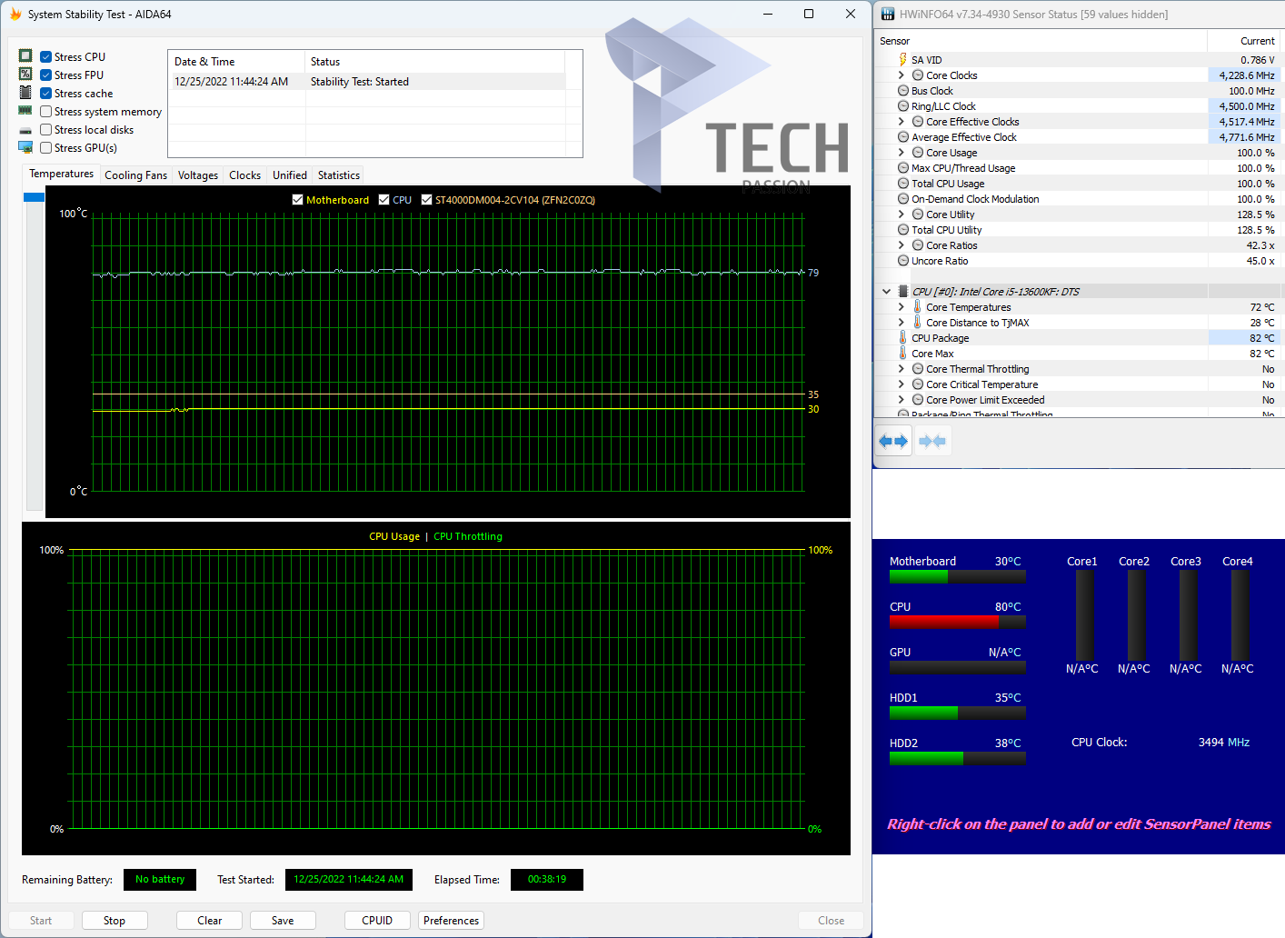 • لا يوجد اختناق حراري في مراجعة المبرد الهوائي Noctua NH-U12s Redux على هذا التردد مع معالج Core I5-13600KF.