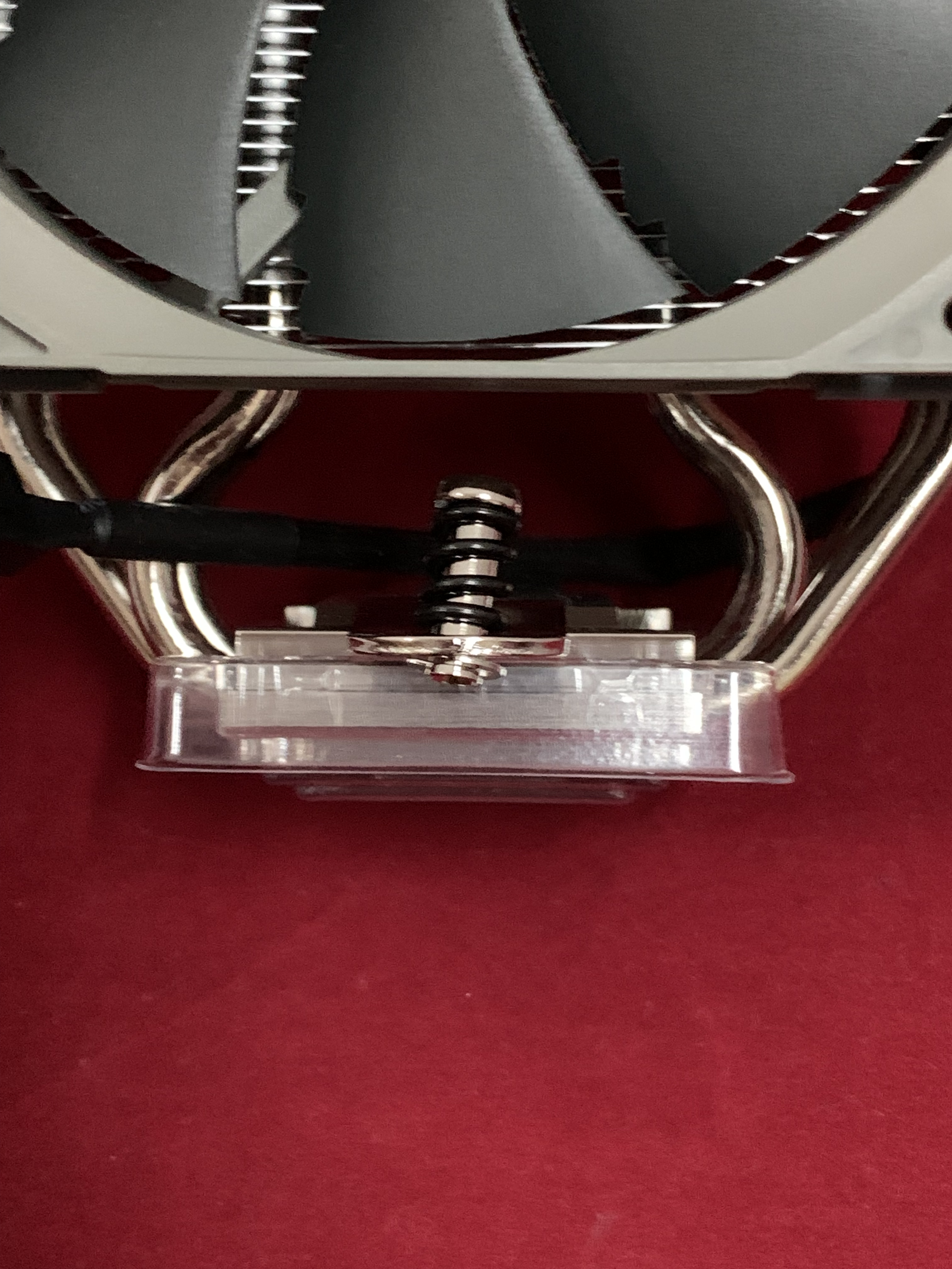 • لابد عند تركيب المبرد الهوائي Noctua NH-U12s Redux فك المروحة الرئيسية لكي تتمكن من تركيب المبرد على القاعدة المثبتة أسفل المعالج مع اللوحة.
