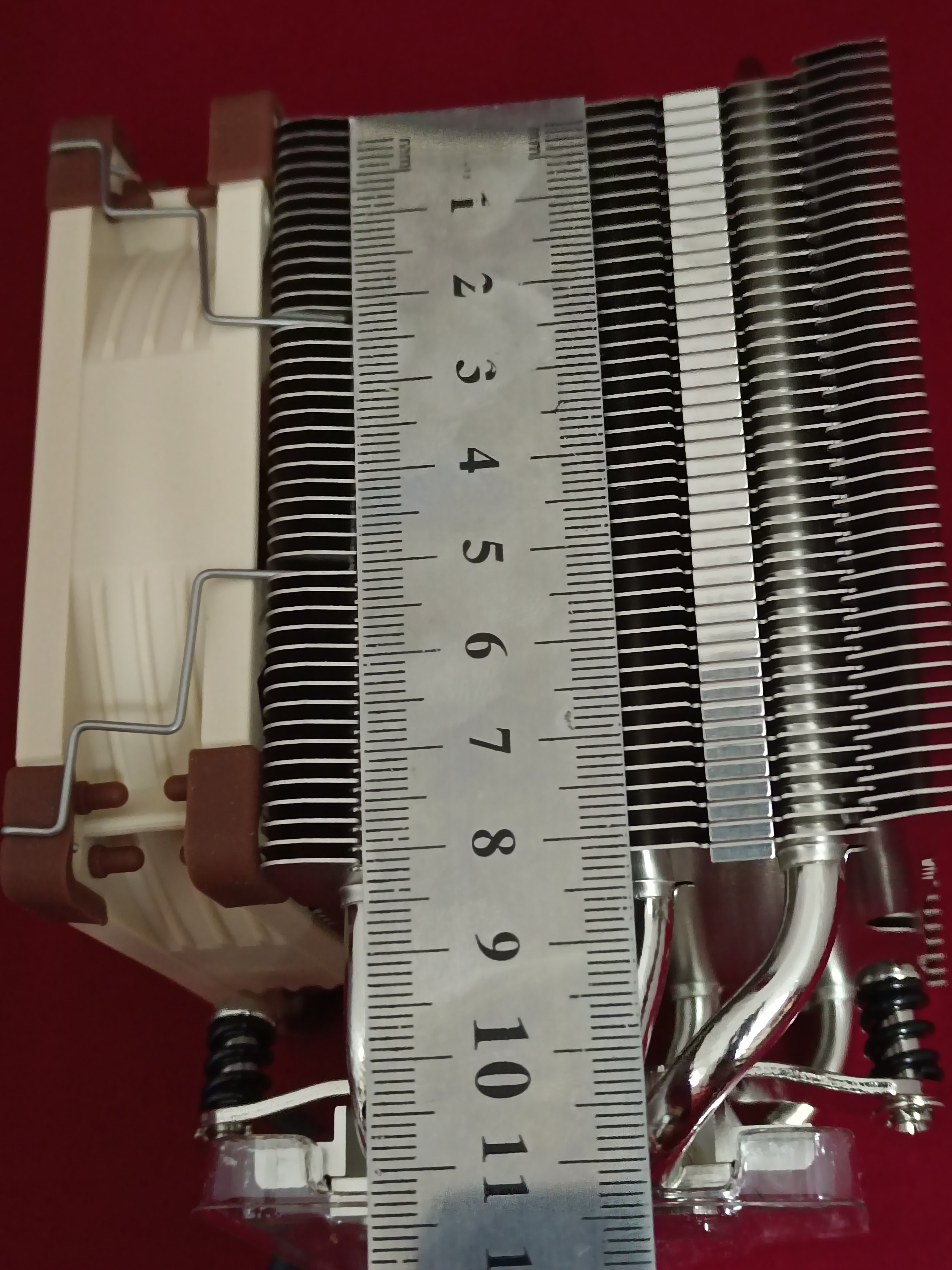 المبرد يتكون من 43 شريحة من الألومنيوم بارتفاع 125 ملم بداية من المروحة إلى قاعدة المبرد وعرض 95 ملم من بداية المروحة إلى نهايتها.