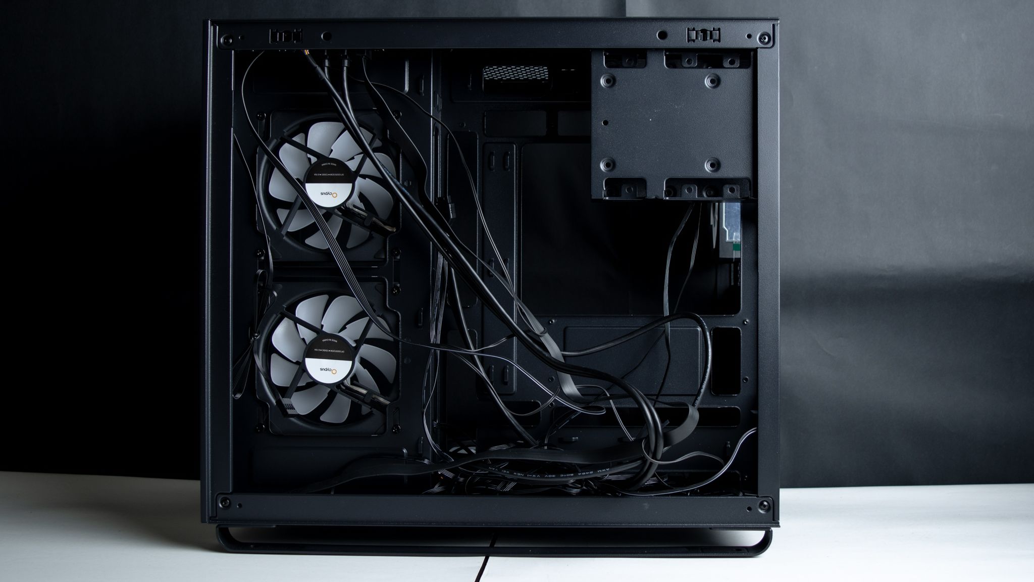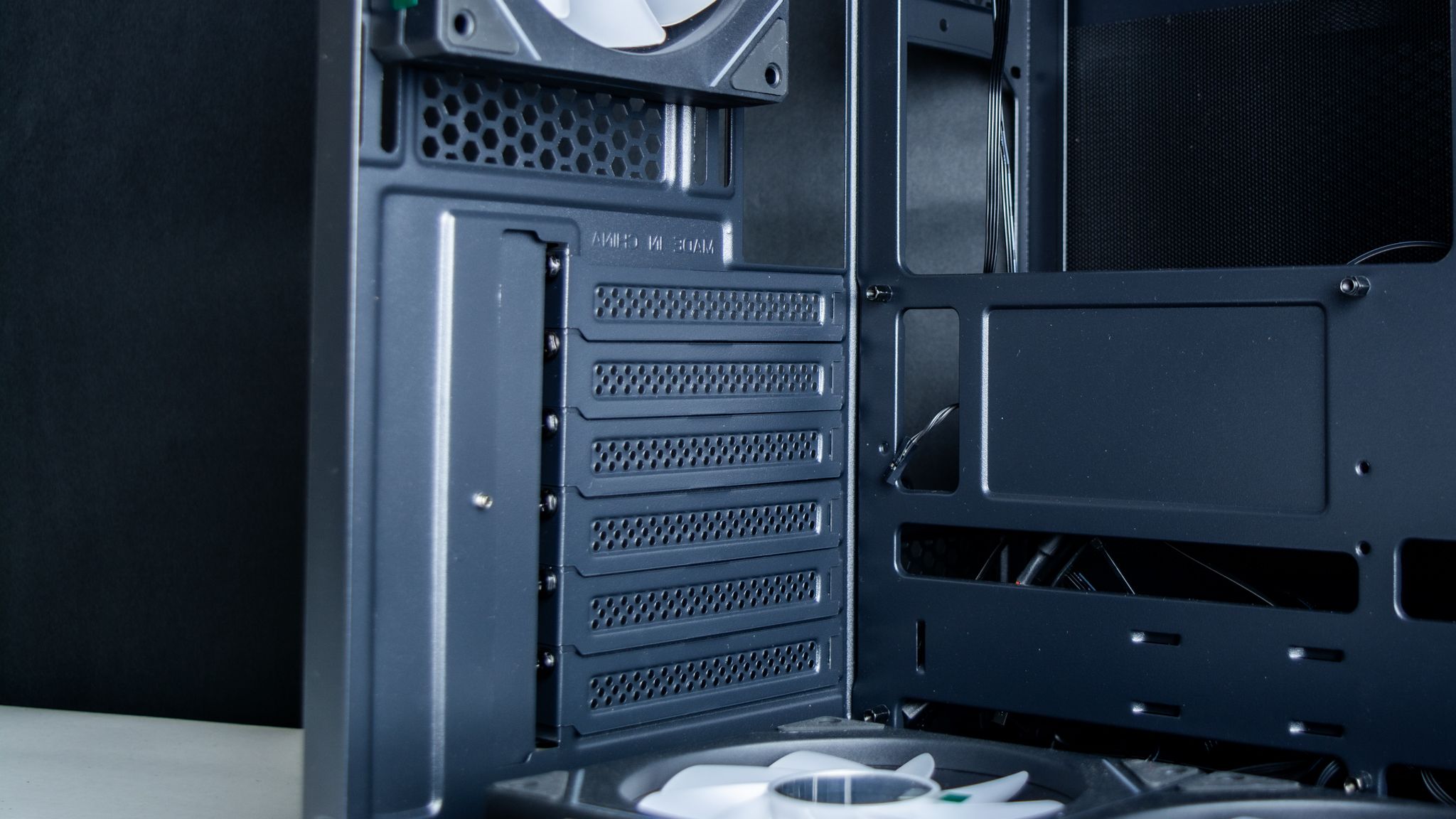 بينما الغرفة الأخرى أو يطلق عليها الغرفة الخلفية يتواجد بها مكان لـ تركيب وحدات التخزين وأن هذا المكان مخصص لتركيب وحدة تخزين واحدة من نوع HDD بينما يمكن تركيب 2 من نوع SSD، ومن أجل تركيب عدد 2 وحدة من HDD ستقابل صعوبة في إغلاق الباب الخلفي لـ الصندوق، الذي يحتوي على العديد من الفتحات مع تواجد عدد 2 فلتر مغناطيسي لمزود الطاقة والآخر من أجل المراوح الجانبية.