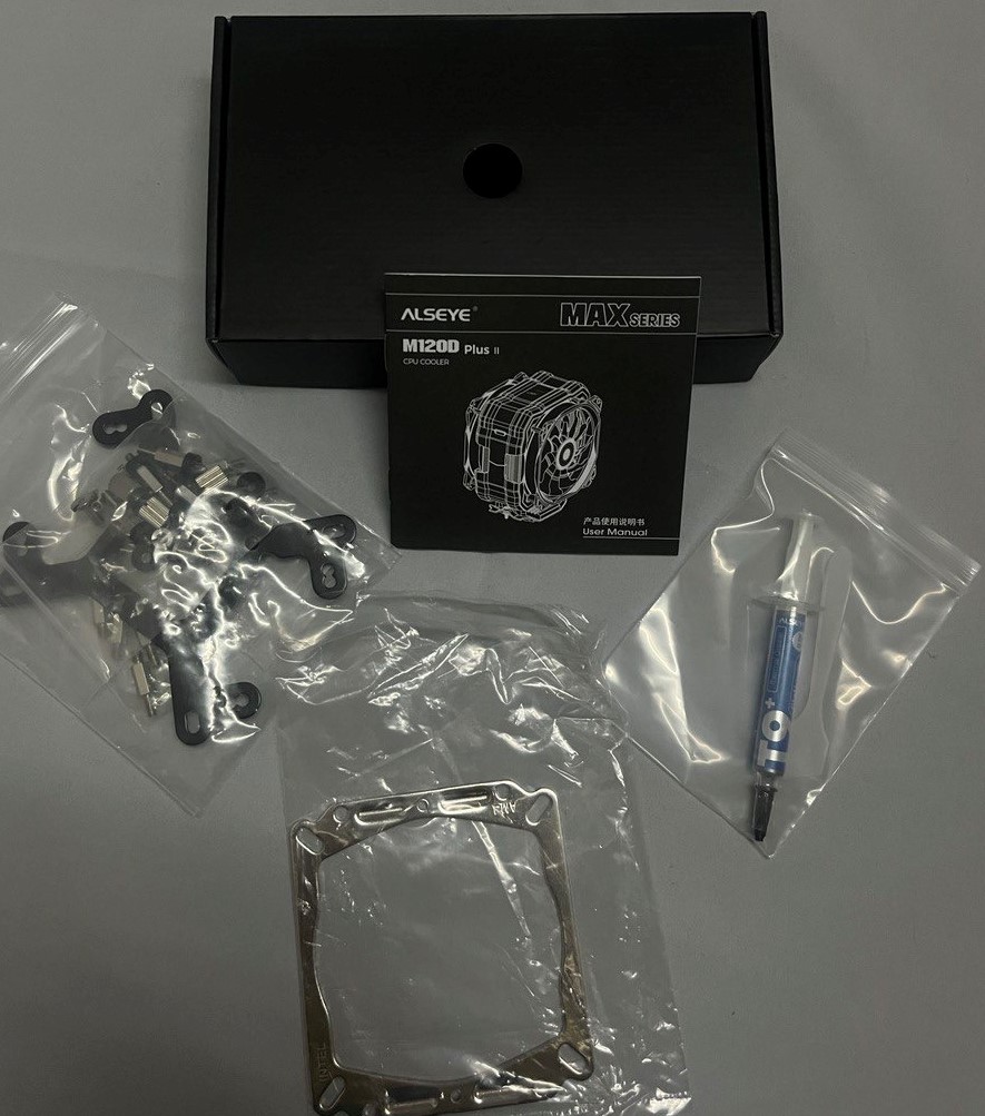 الصندوق الثاني: يحتوي على مقابس تركيب على منصتي INTEL و AMD مع أنبوبة معجون من نوع M9 Plus مع الكتالوج المساعد لعملية التركيب.