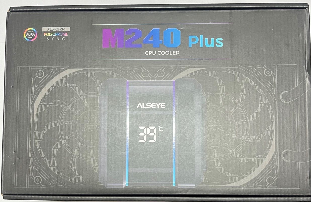 العلوي: على اسم المبرد M240 Plus Cpu Cooler مع شكل شاشة المبرد عليها ALSEYE.