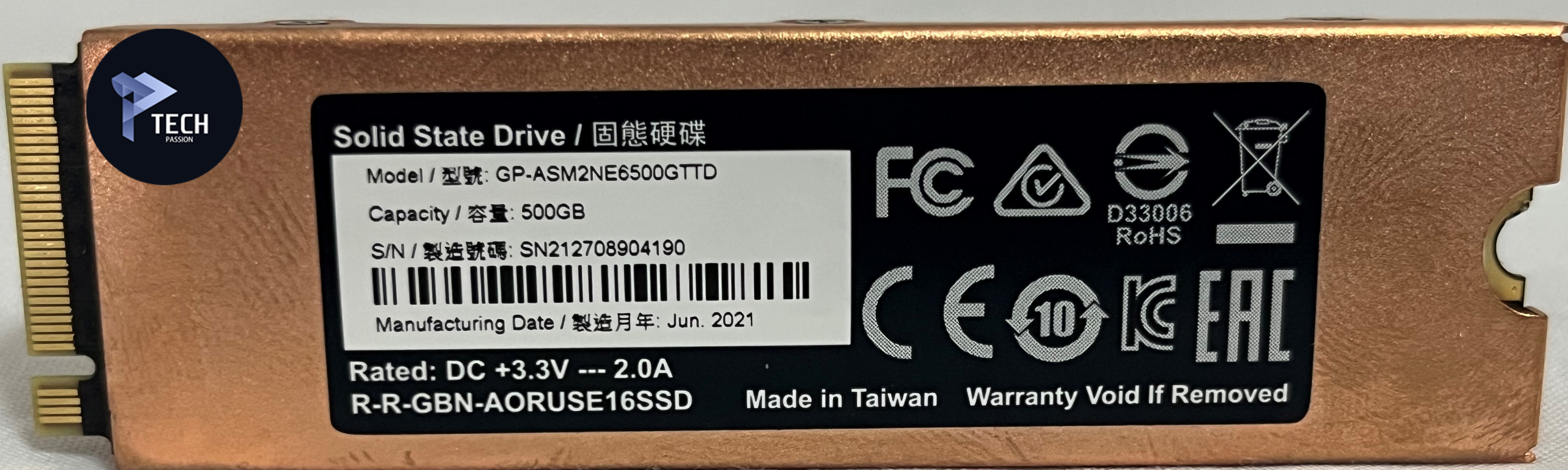 - تأتي وحدة التخزين بواجهة NVME 1.3 M.2 والتي تتوافر في اللوحات الحديثة، تستخدم الوحدة شريحة DDR4 بمساحة 4 جيجابايت من نوع SK Hynix H5AN4G8NAFR.