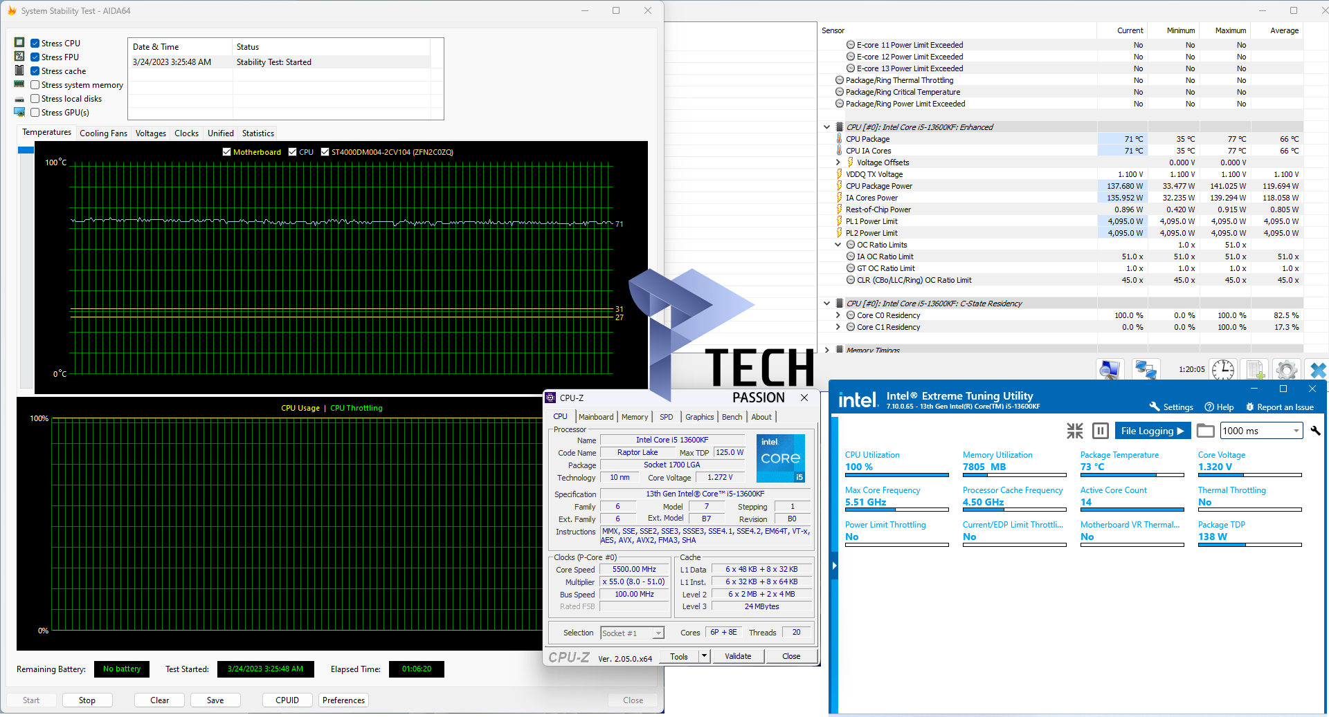 - نتيجة الاختبار مع تردد 5.5GHz نتج عنه درجة حرارة تترواح بين 71، مع متوسط قدرة سحب طاقة 138 واط لكن تراوحت قدرة السحب الفعلية أثناء تسجيل النتيجة 137 واط النتيجة محترمة ومشجعة فيما سيلي.