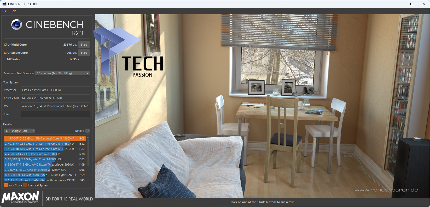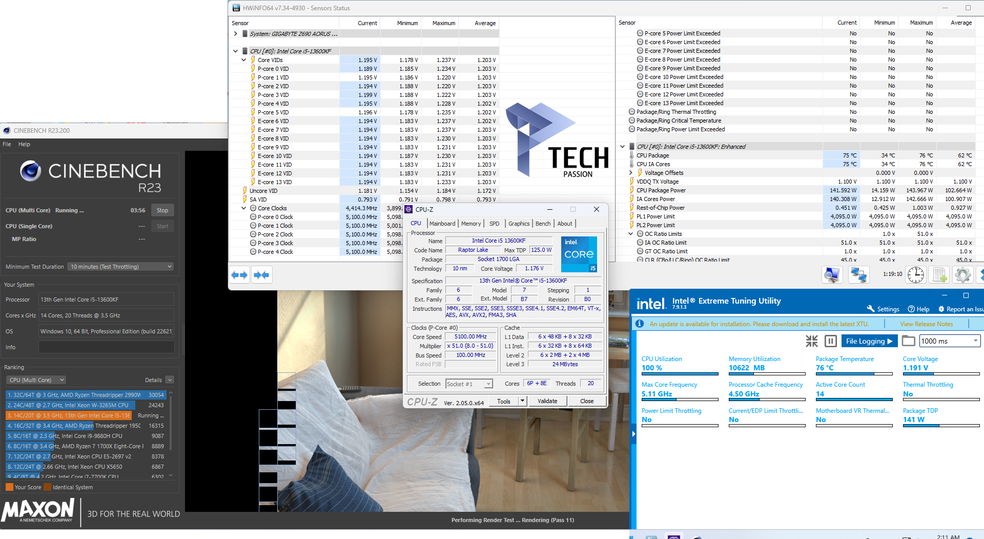 - الاعتماد على برنامج CINEBENCH R23 المميز في كيفية الضغط على المعالج في كل الظروف.