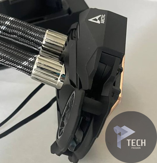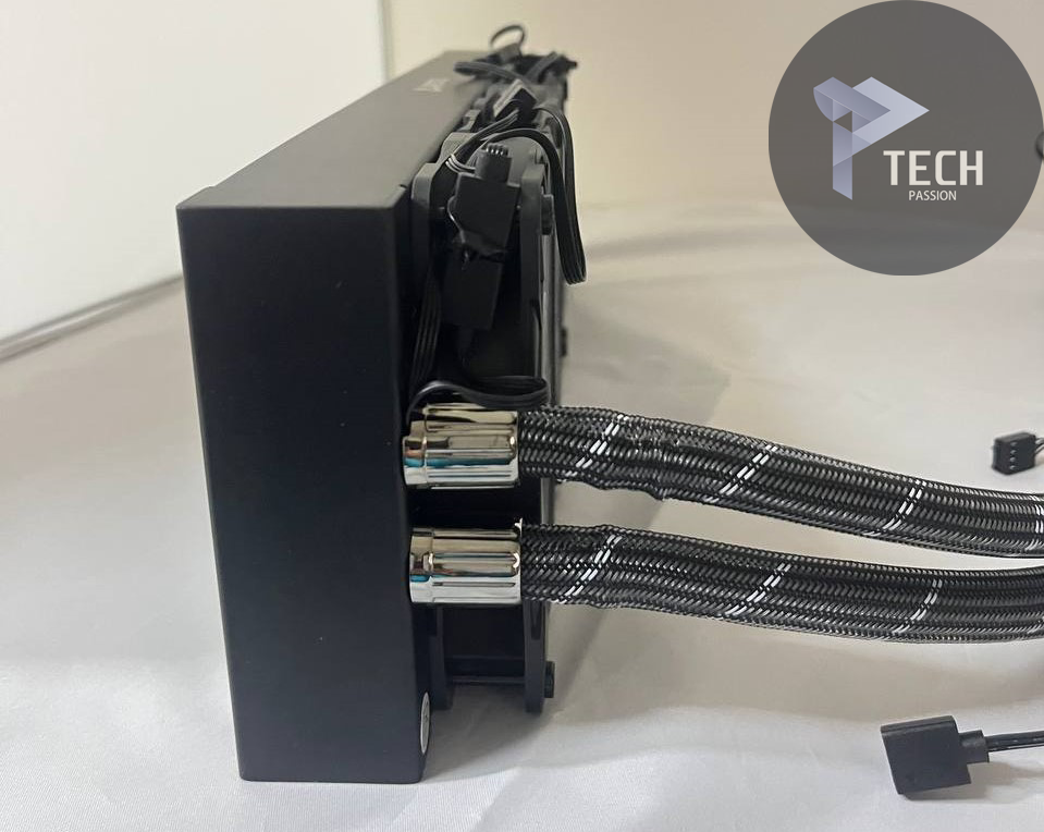 اتصال الأنابيب بالمضخة والرادياتير مختلف عن الكثير من المبردات مع تواجد الحلقات الفضية اللامعة التى تعطى شكل رائع فنلاحظ أيضا أن نقاط اتصال الأنابيب بالرادياتير تحديد قريبة من بعضها جدا و هو عكس الكثير من المبردات الأخرى فربما السبب يكمن فى التصميم داخليا ليسمح بتوزيع المياه داخل القنوات بشكل مختلف عن المعتاد.