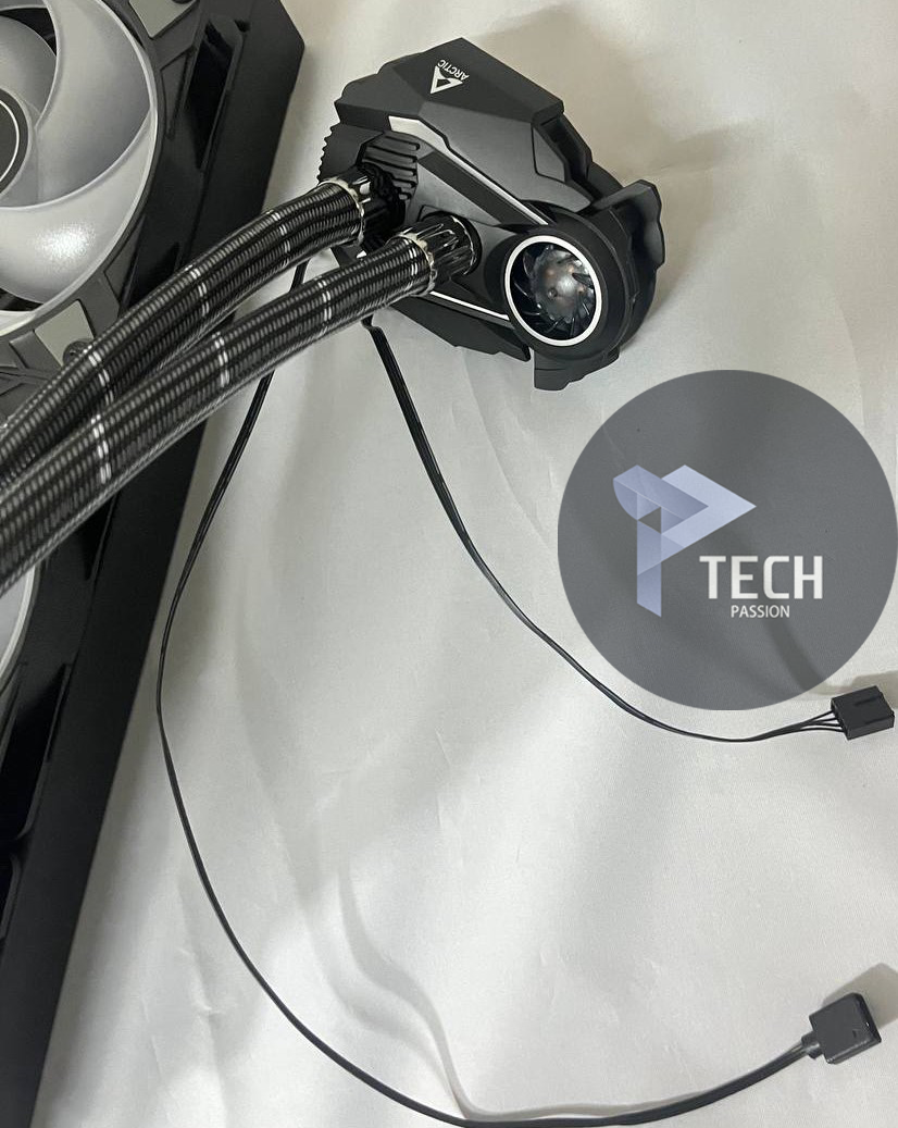 تأتي مرواح مبرد Arctic Liquid Freezer II 360- ARGB مثبتة مسبقا وأيضا الأسلاك الخاصة بها مثبتة تلقائيا ومهيأة لتركيب ARGB، لاننسى توصيل كابل المضخة لتشغيل المراوح في CPU Fan.