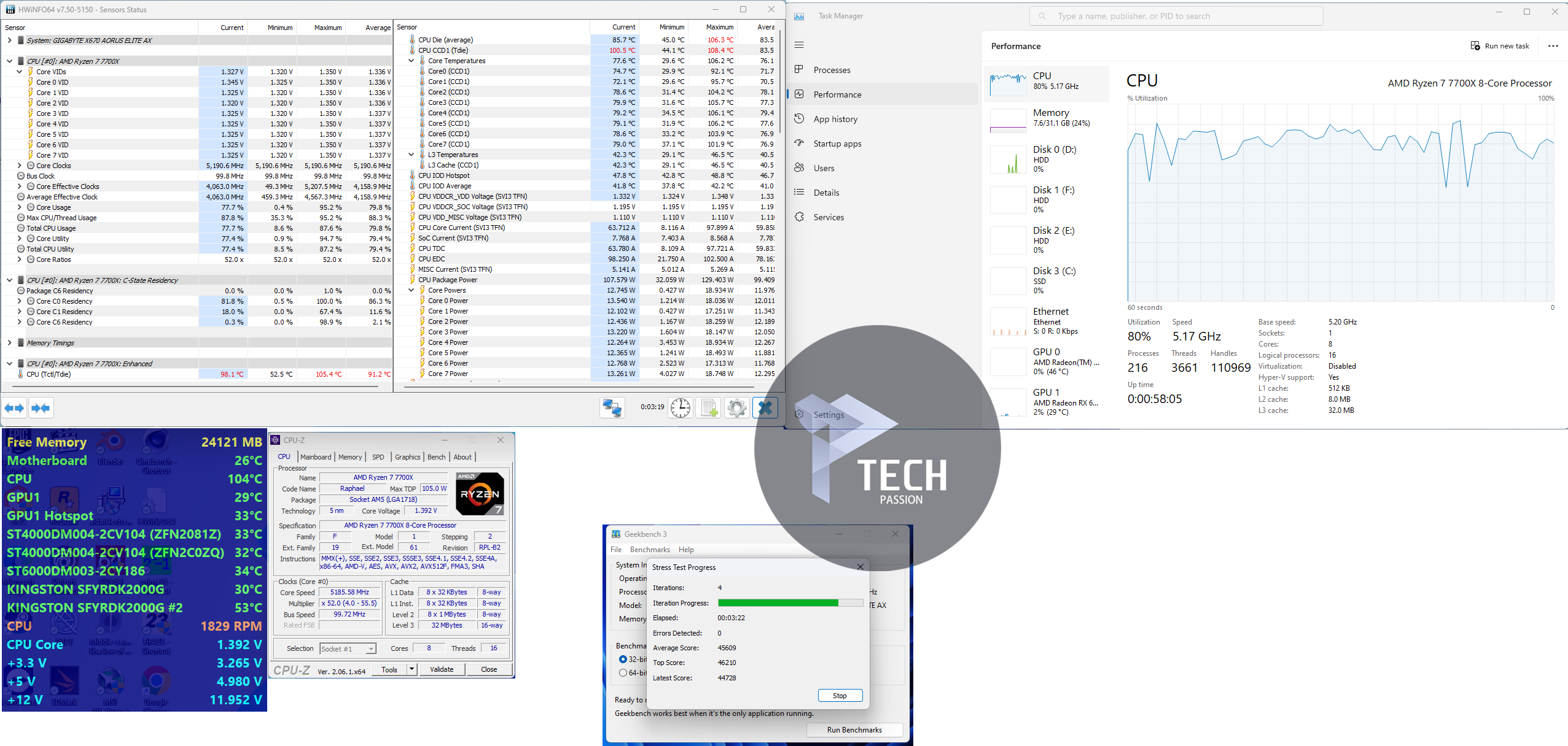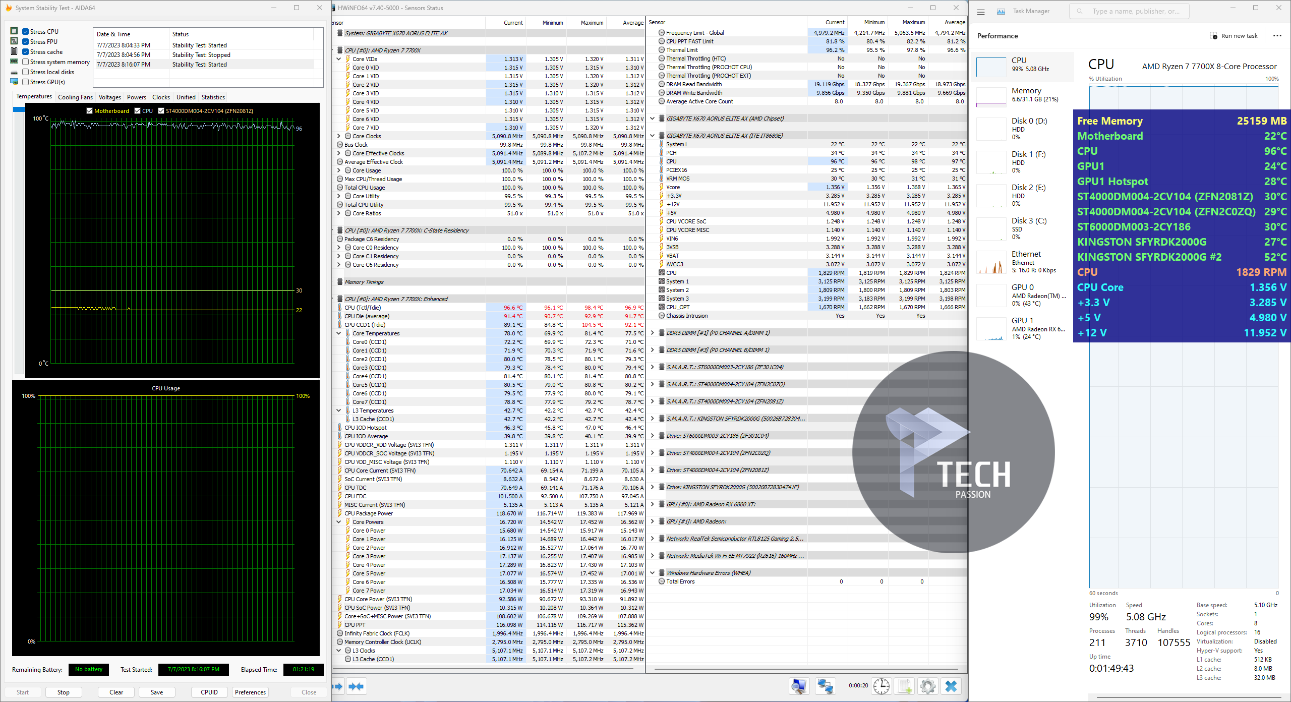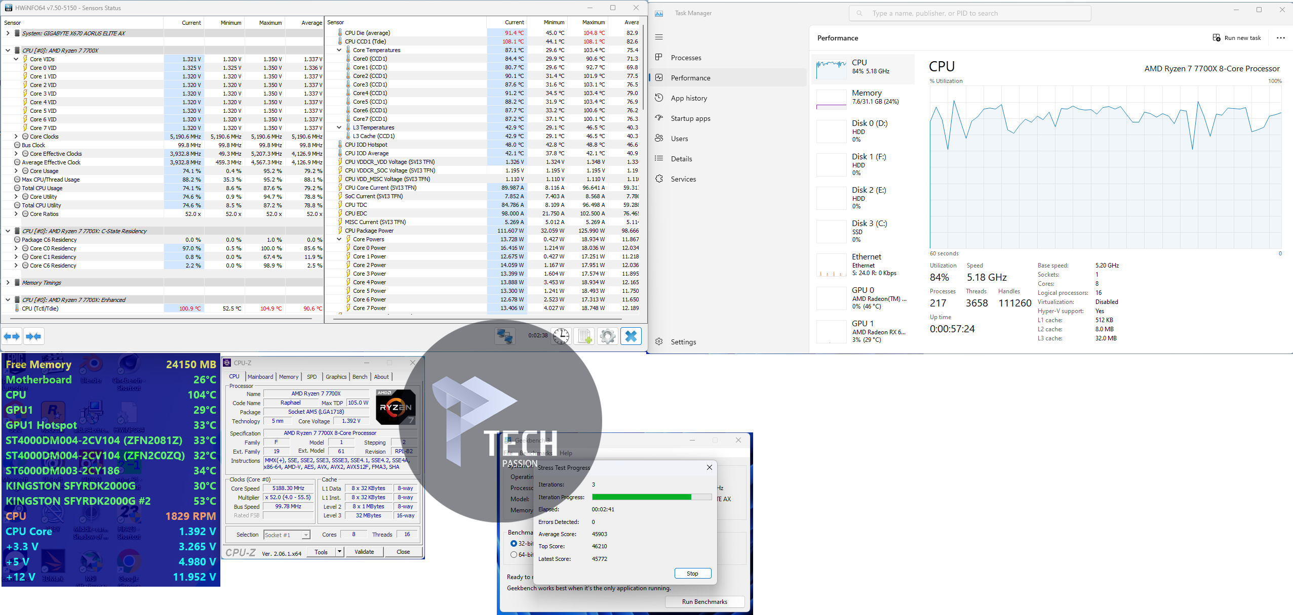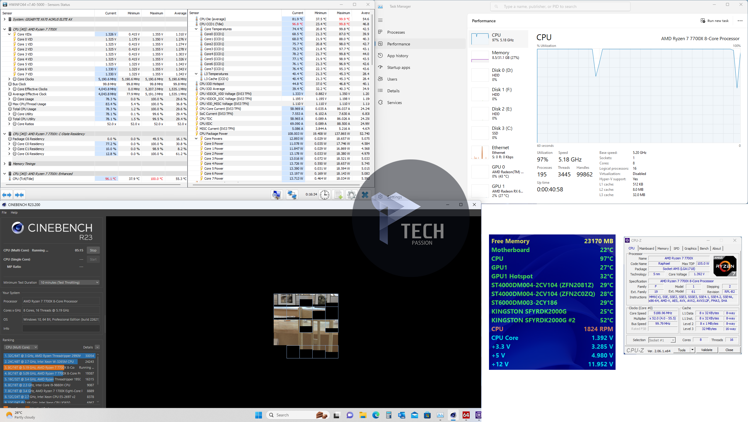 بداية الضغط على تردد 5.2GHz مع استخدام فولتية 1.340v تراوحت درجة الحرارة من 100 درجة إلى 109.6 مع متوسط درجات حرارة 99.