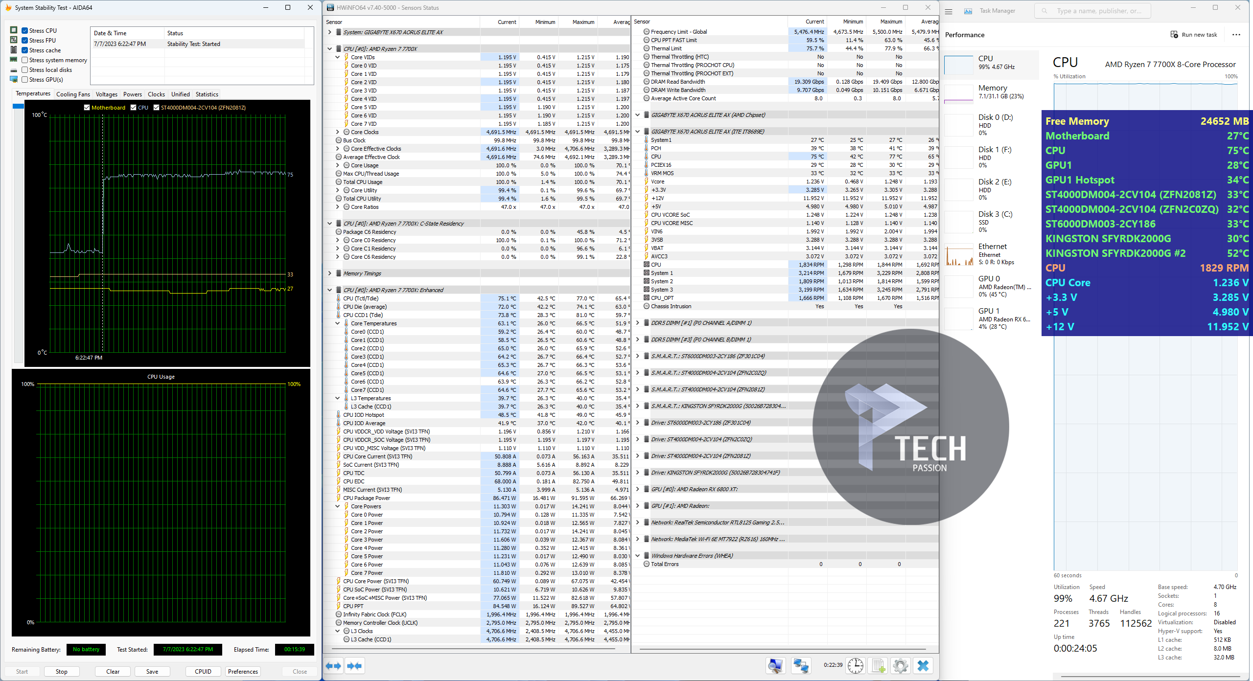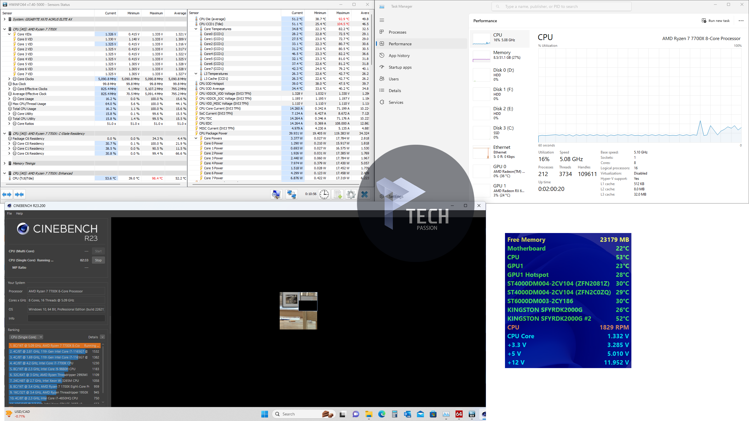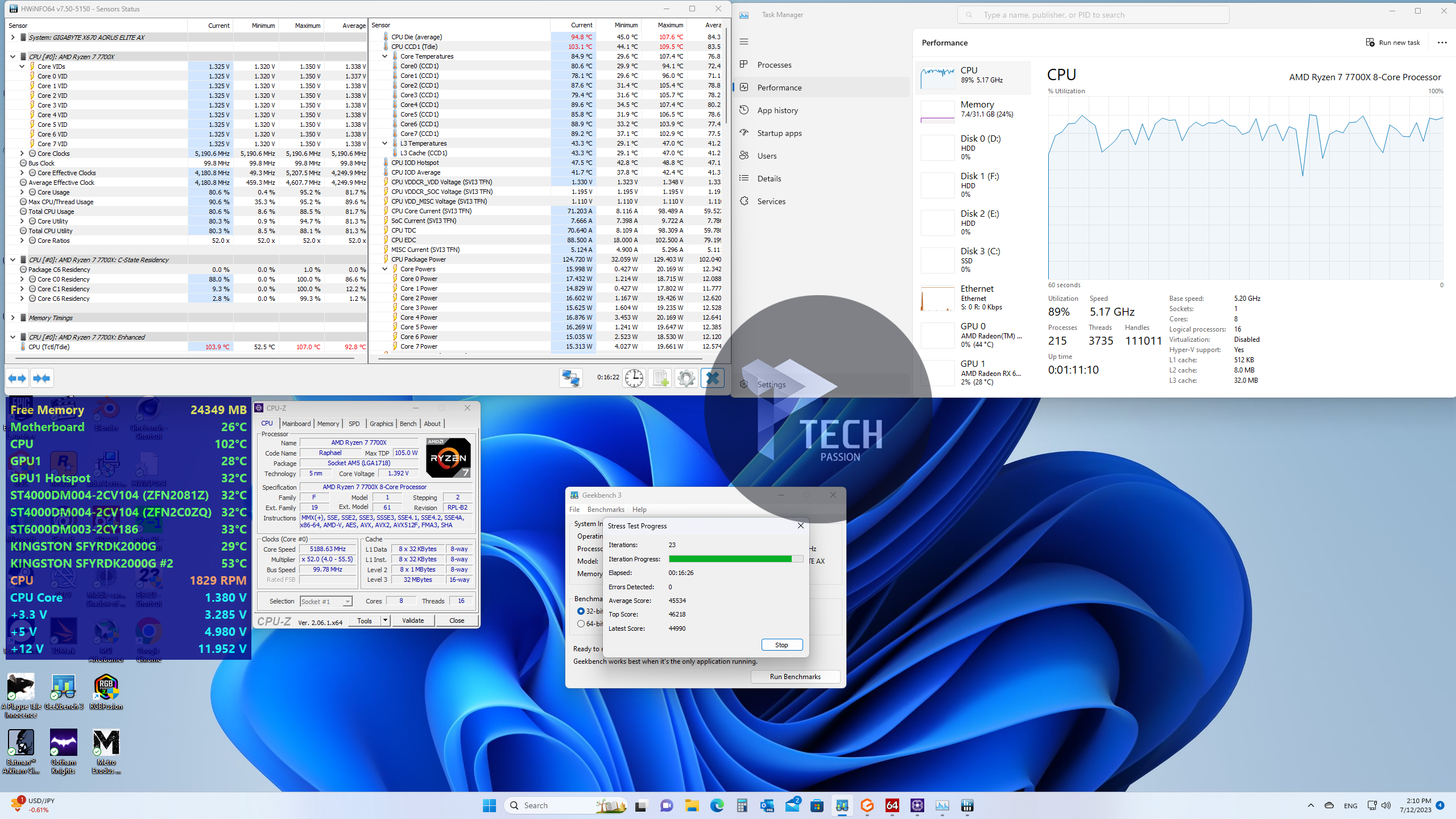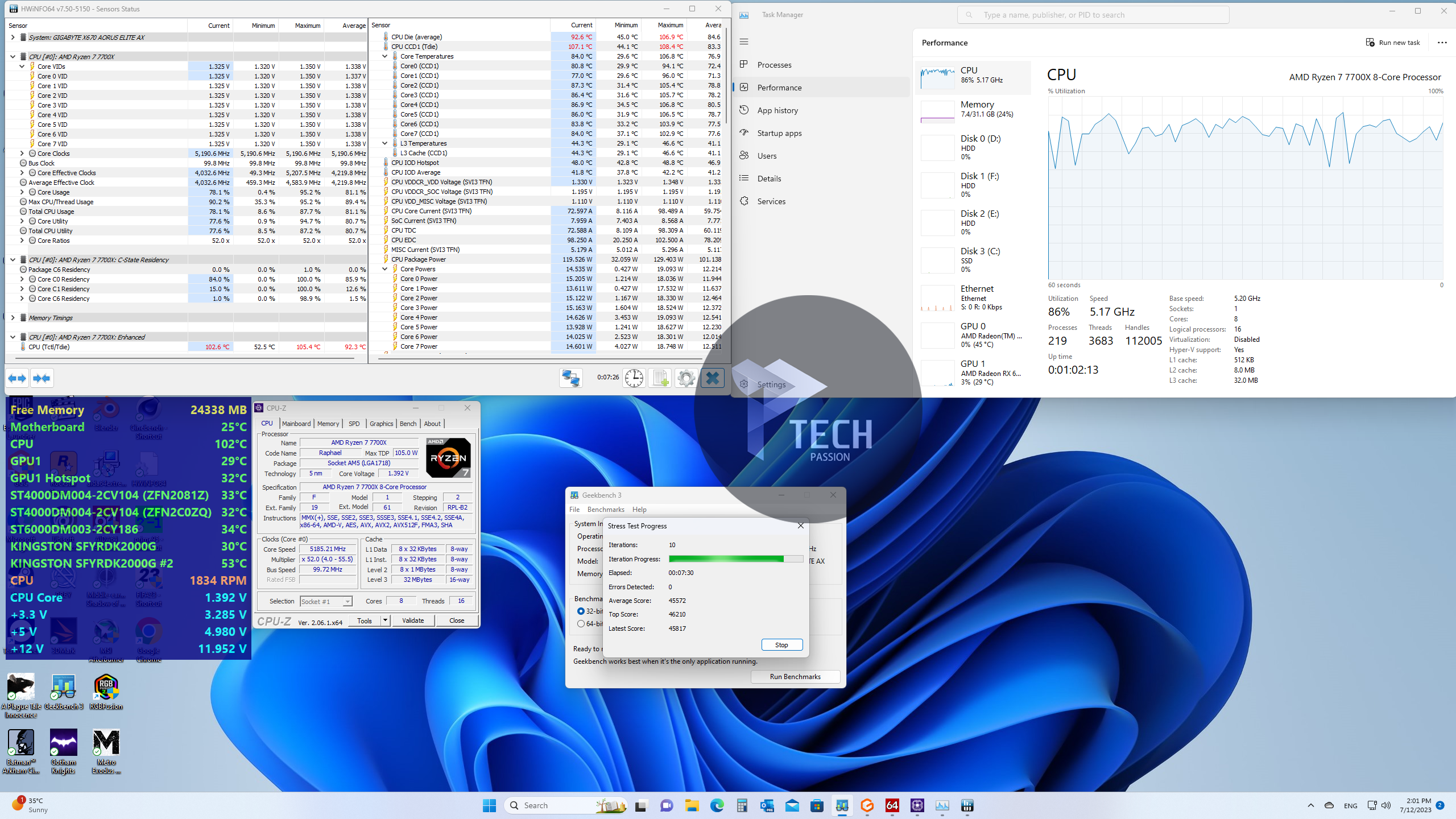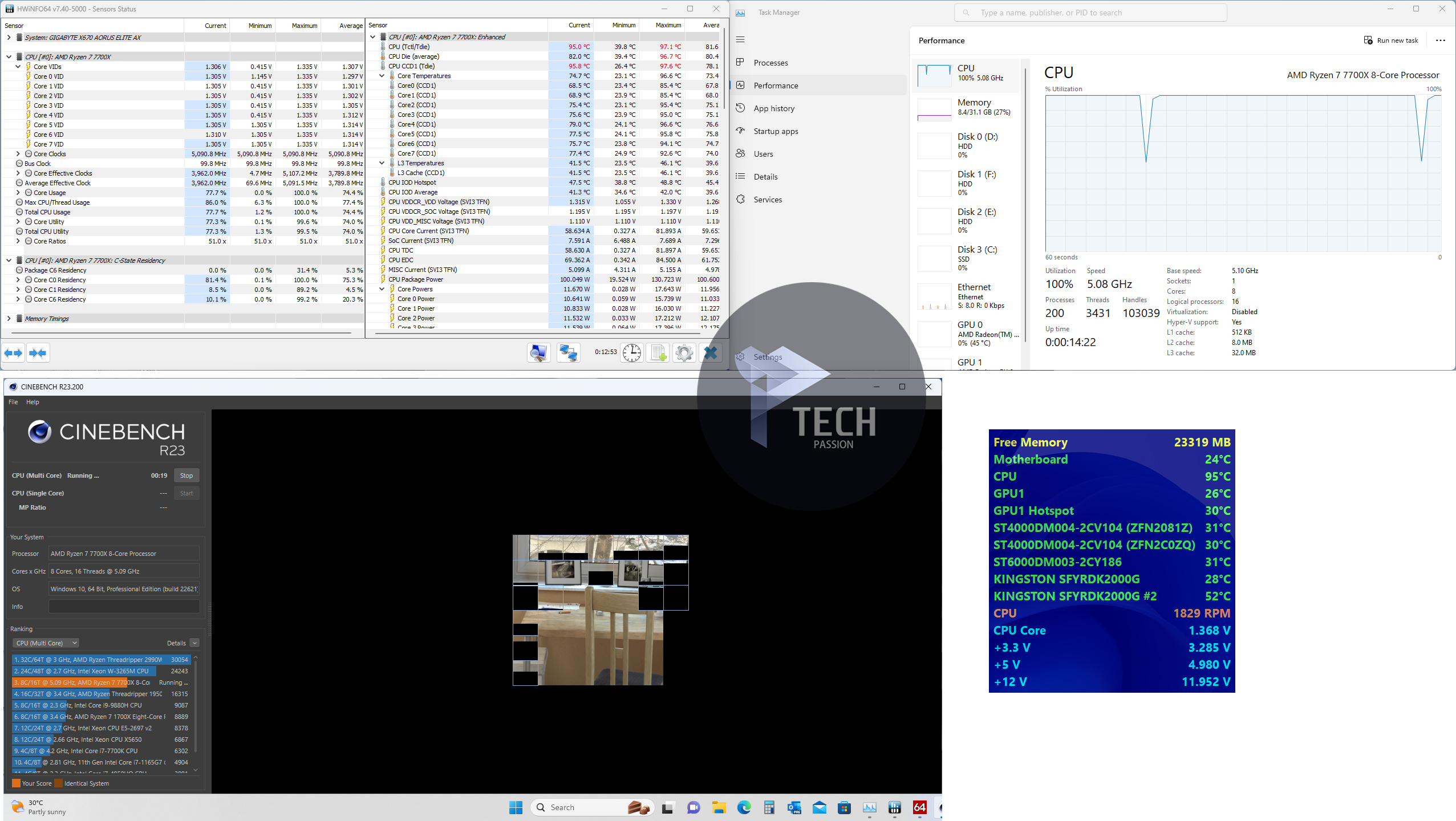 بداية الضغط على تردد 5.2GHz مع استخدام فولتية 1.340v تراوحت درجة الحرارة من 100 درجة إلى 109.6 مع متوسط درجات حرارة 99.