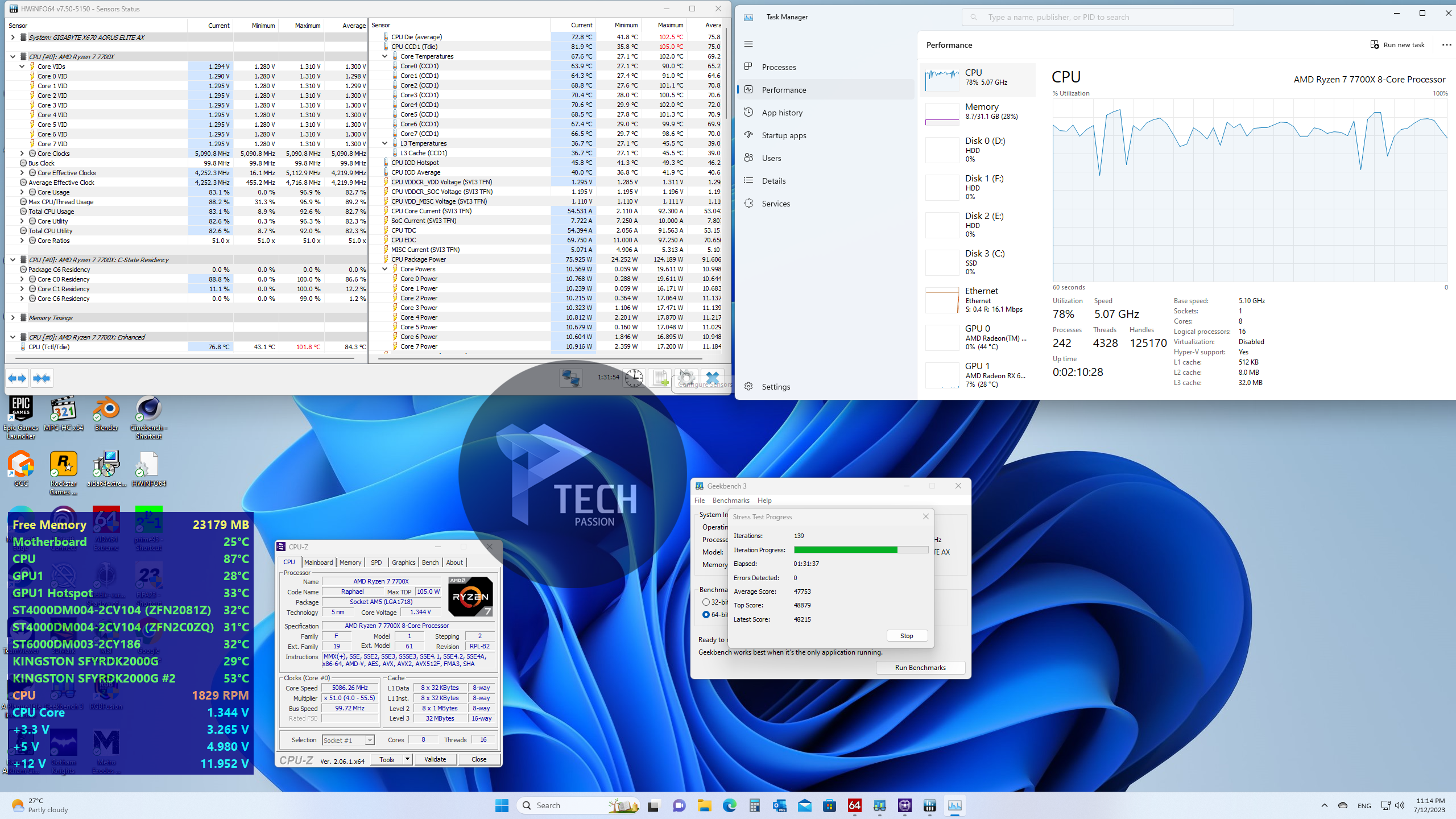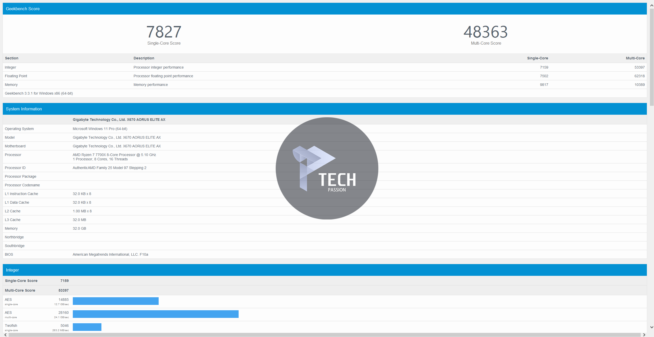 • حقق البرنامج نتيجة 7827 في النواة الواحدة بينما في حالة تعدد الأنوية كانت النتيجة 48363.