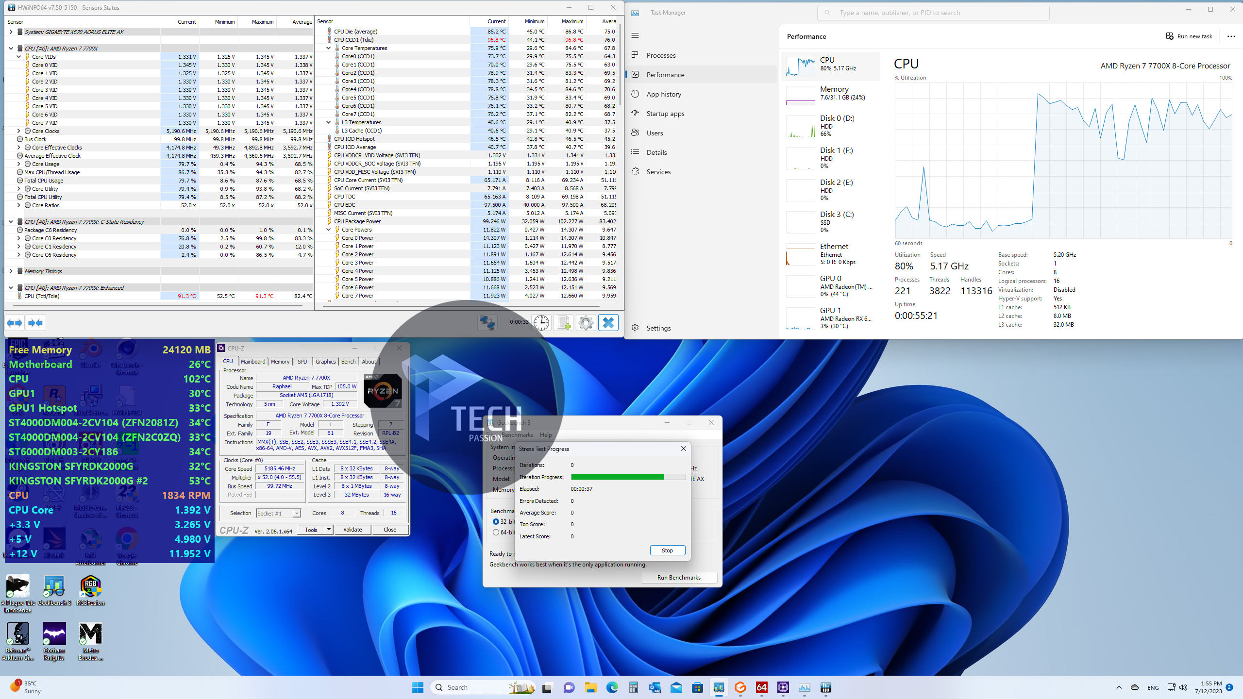 - الانتقال إلى تردد 5.1 باستخدام فولتية 1.320v والحصول على استقرار تام فى درجة الحرارة إلى 97 كأقصى درجة حرارة وهذا ممتاز مع معالج من AMD.