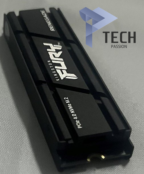 - الجانب الأمامي من وحدة التخزين تأتي بالمبدد الحراري الخاص بها أي ( Pre-Build Heatsink) مكتوب عليه اسم الوحدة KingStone Fury Renegade PCIe 4 NVMe M.2.