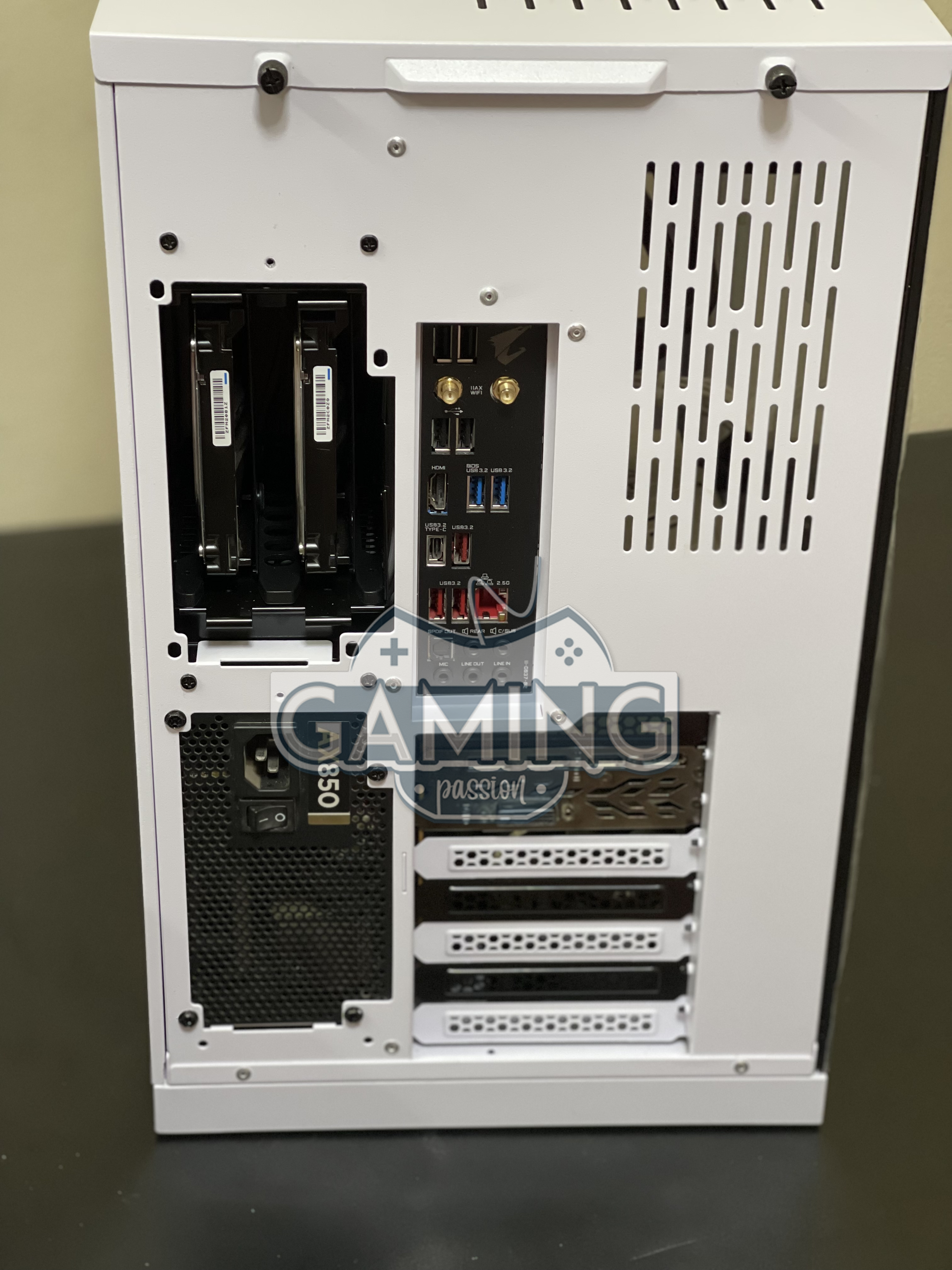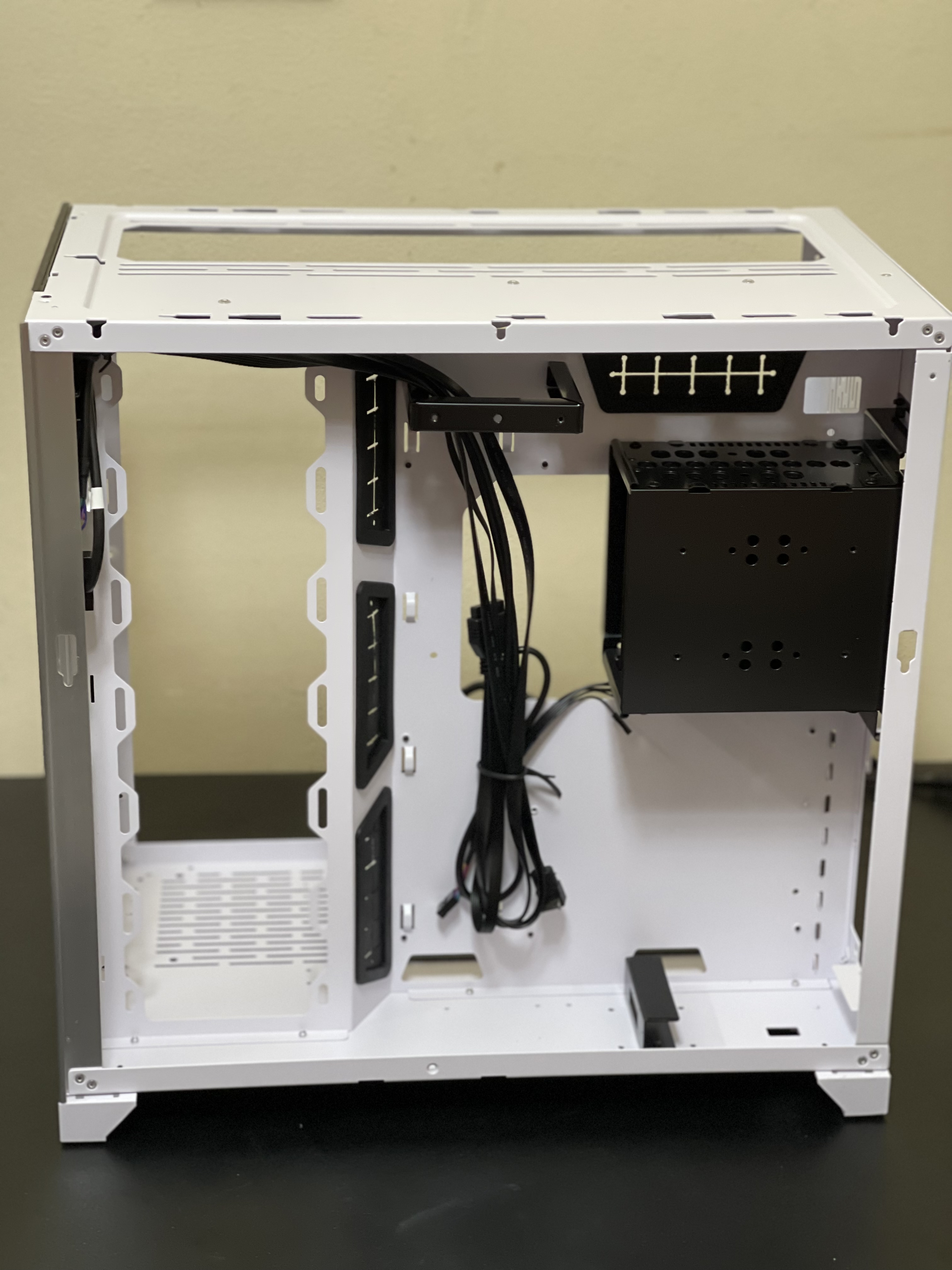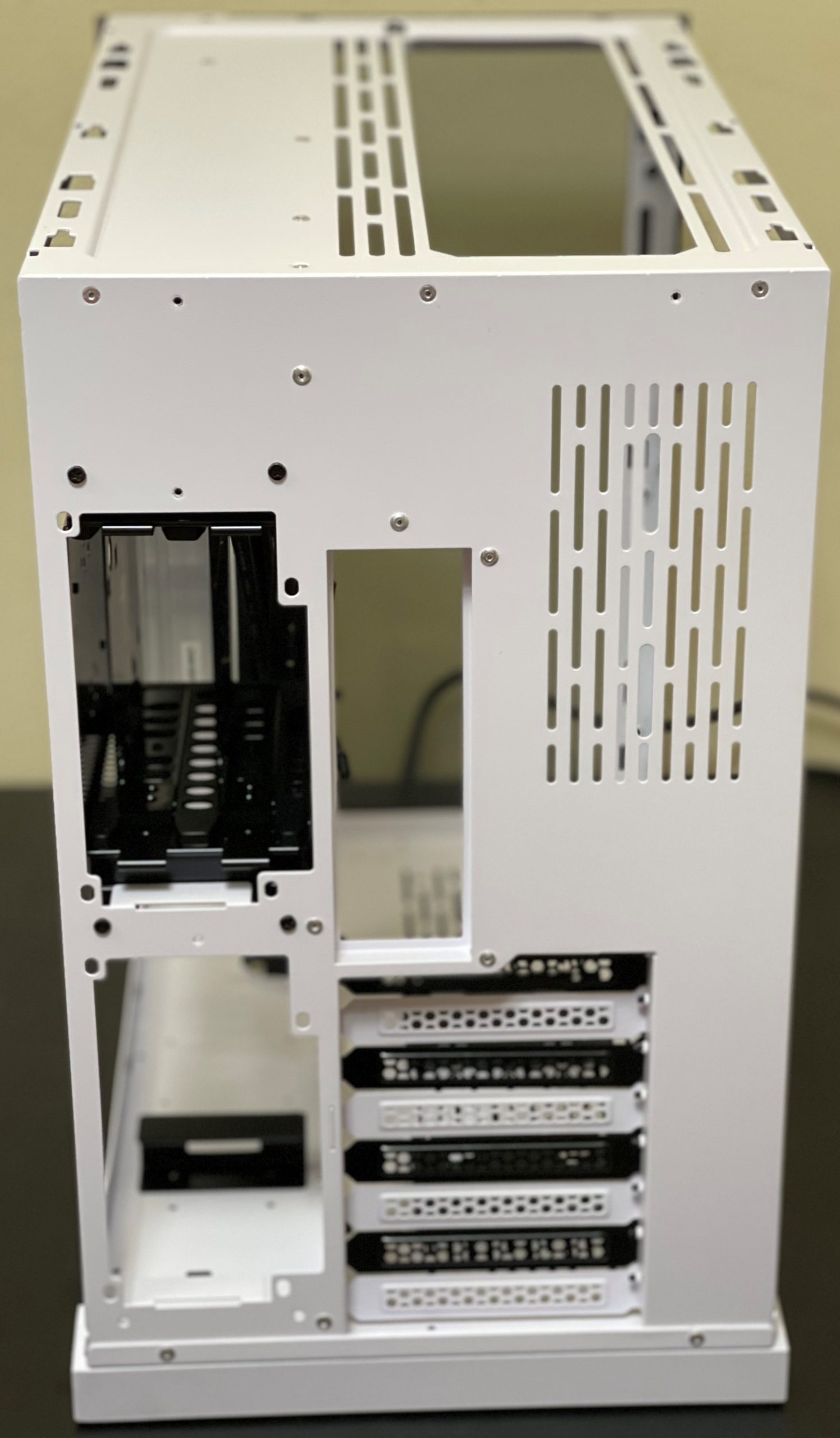 تميز هذا الجانب أنه يحتوي على صندوق لتركيب وحدات التخزين من نوع HDD، وأسفله مكان لتركيب مزود الطاقة، وأيضا تميز بكون الغطاء الخلفي الطولي الموضح بالصوره،