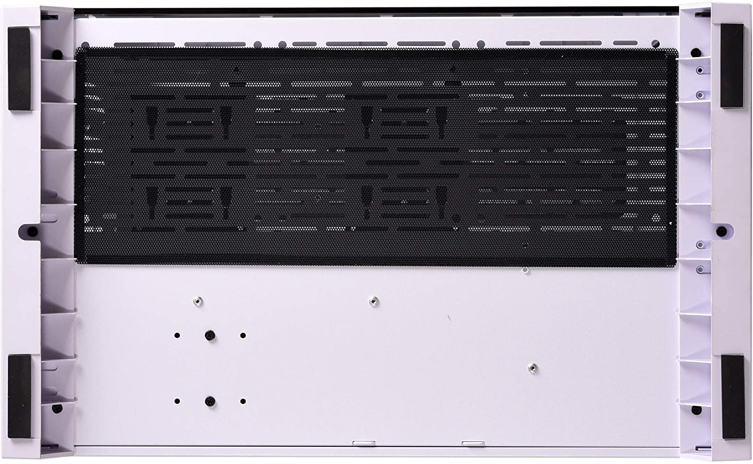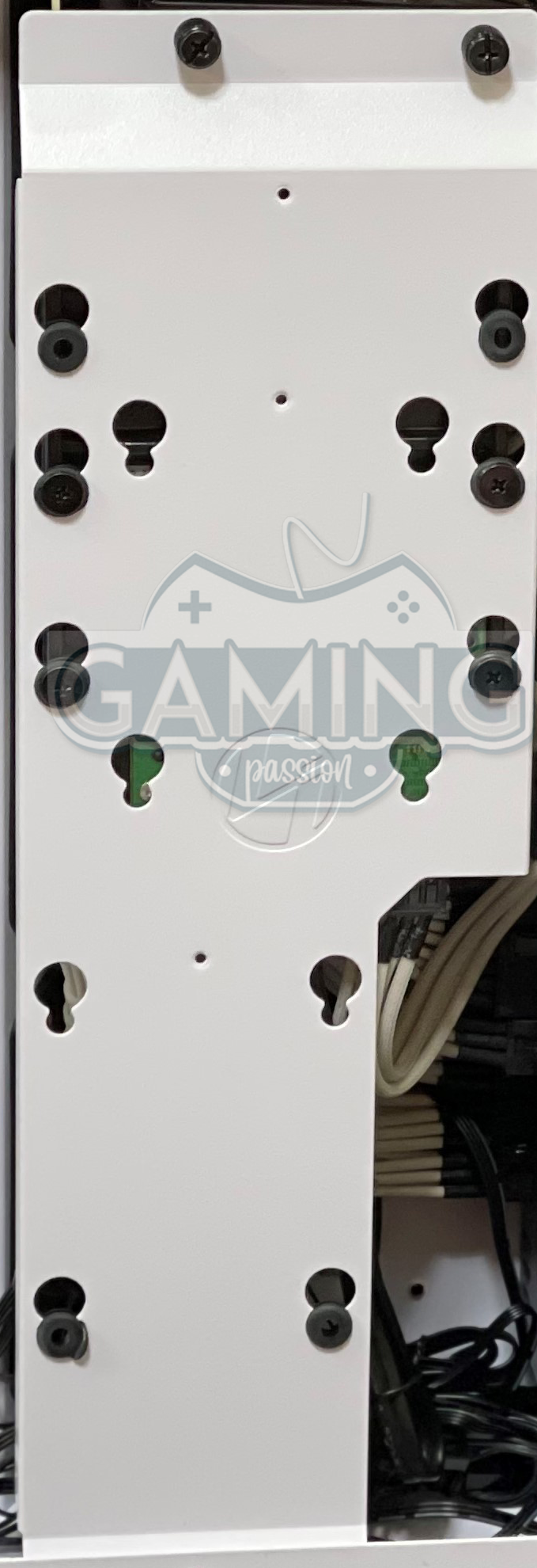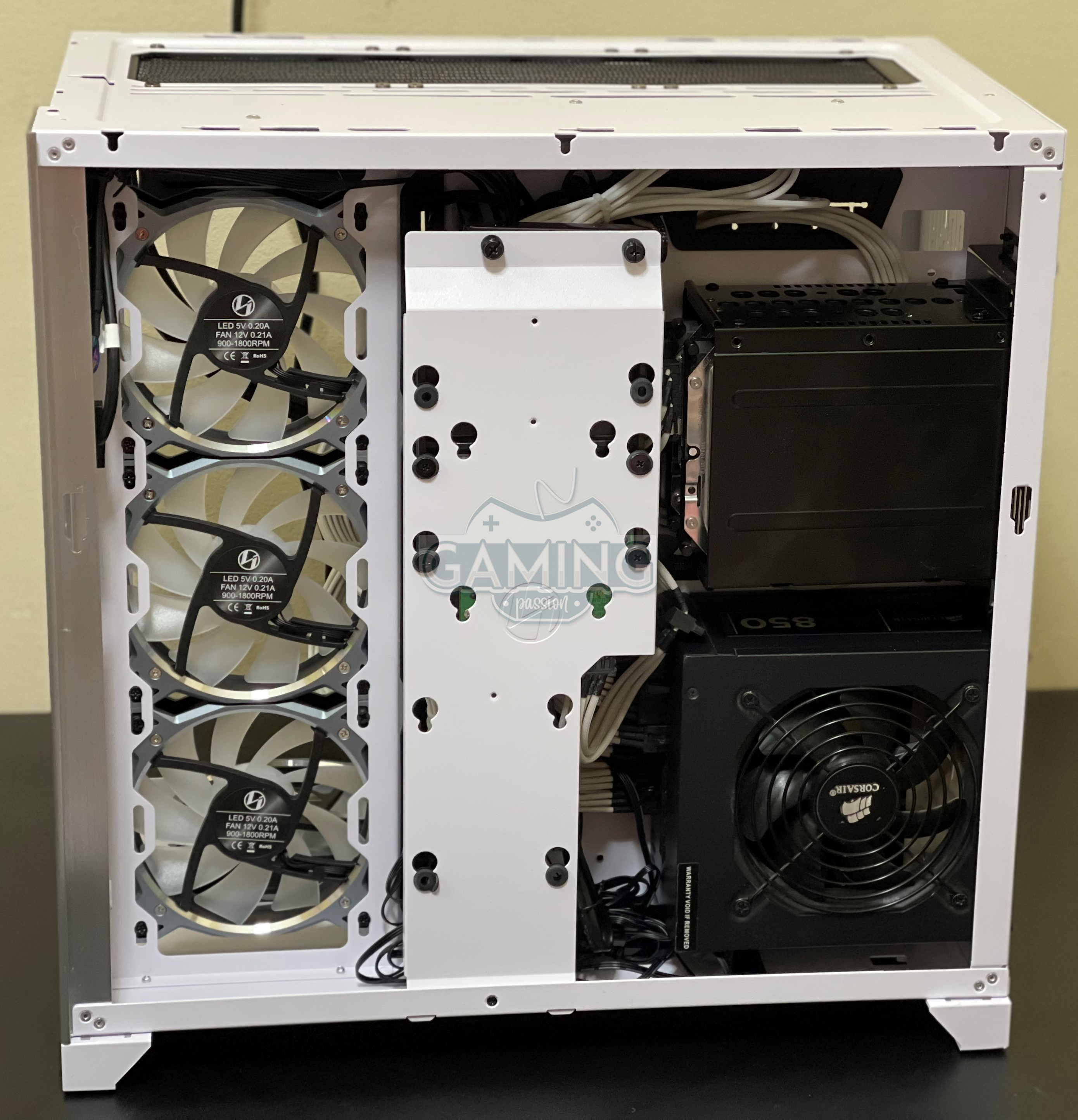 بعدد 3 مراوح بحجم 120 ملم أو تركيب وحدات تخزين من نوع SSD، بينما في أقصى الجانب في الاتجاه الأيمن يمكنك تركيب مبرد مائي بحجم 360 ملم أو تركيب 3 مرواح اضافية بحجم 120 ملم. - الخلفي: هو الجانب مميز عن باقي صناديق الحاسب المتاحة حاليا حيث أطلقت عليه الجانب الخفي وذلك بسبب كونه خافي لجميع السلوك تماما،