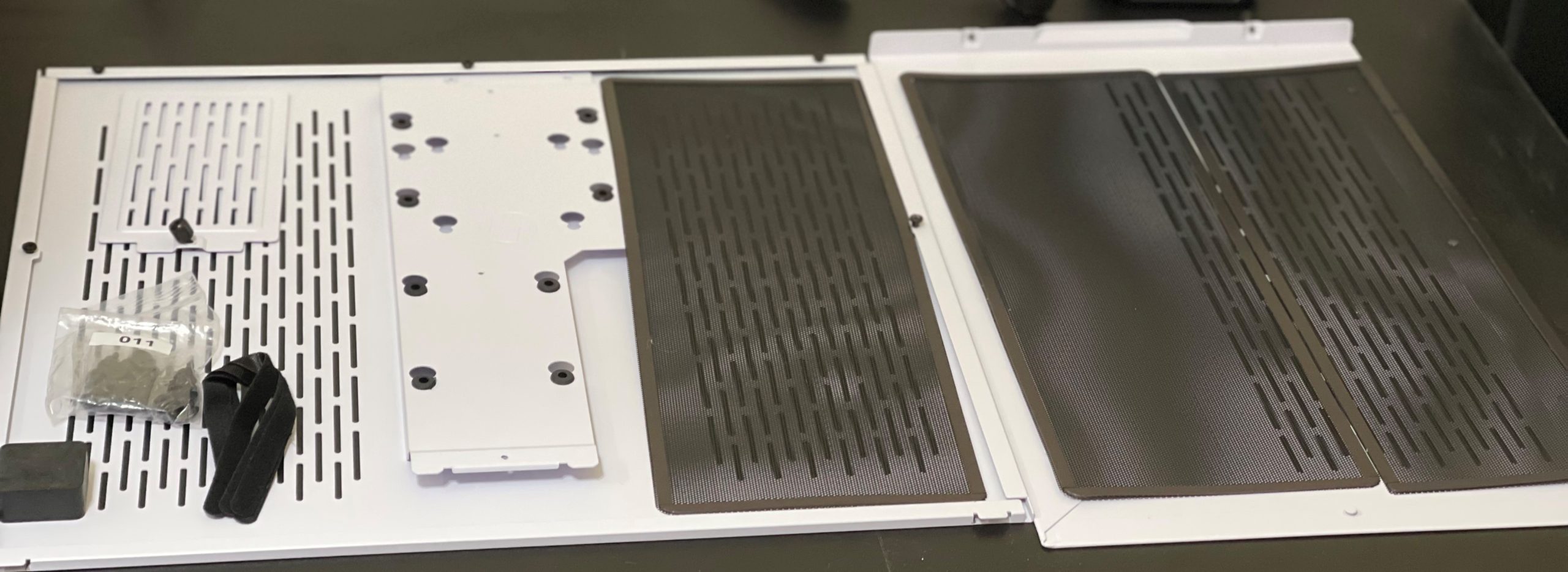 ومنفذين من USB3.1، مع منفذ Type-C، مع منفذ من أجل السماعات المحمولة والمايك. - الأساسي: هو الجانب الأمامي المرئي للجميع والمصنوع من الزجاج في أغلب الصناديق الحديثة، بداخل الصندوق في ظهر الزجاج الخاص بالجانب عدة أماكن مخصصة من أجل تركيب مراوح إضافية