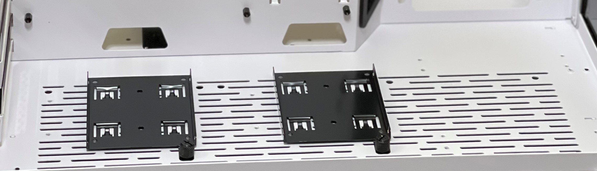 وأن المستخدم يستطيع أن يقوم بتركيب 3 وحدات تخزين من نوع SSD وأيضا الجانب الأمامي يحتوي على مكاني لتركيب أيضا SSD فيكون المجموع الكلي لوحدات التخزين SSD إلى 5،