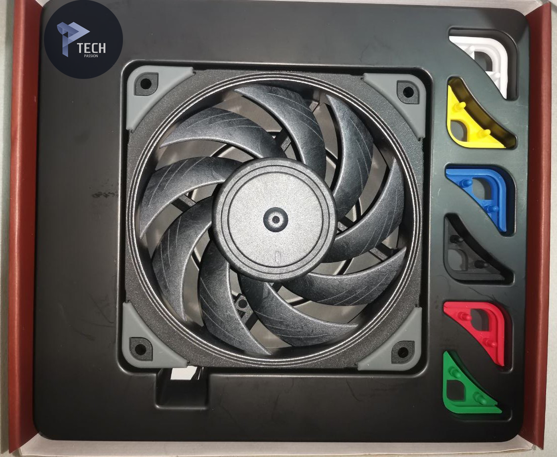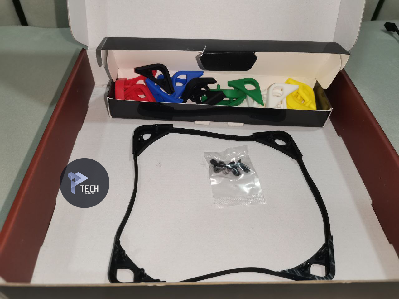داخل العلبة ستجد المروحة و28 موانع اهتزازات من نوع NA-AVP1 تنقسم لسبع ألوان (الأبيض – الأسود – الأحمر – الرصاصي – الأخضر -الأصفر – الأزرق) مع إطار NA-AVG1 Chromax.Black