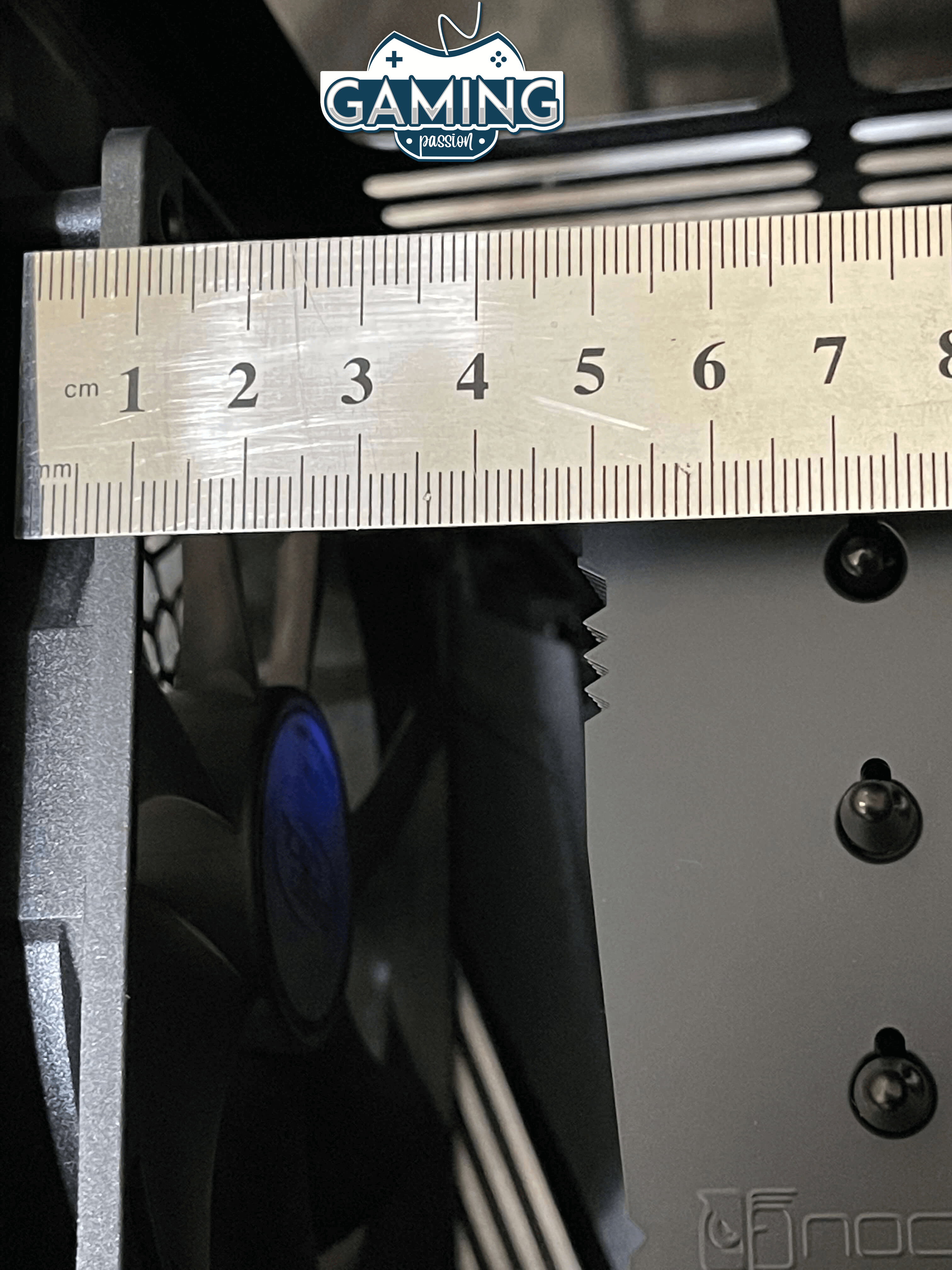 • يكون طول المبرد حتى بداية حافة صندوق الحاسب من الداخل حوالي 7.5 سم، مع ايضا وجود الفلتر الخارجي للصندوق الذي يعمل على تقليل دخول الأتربة إلى الكيسة تلك مسافة كافية من أجل  تبديل الهواء من والى الصندوق.