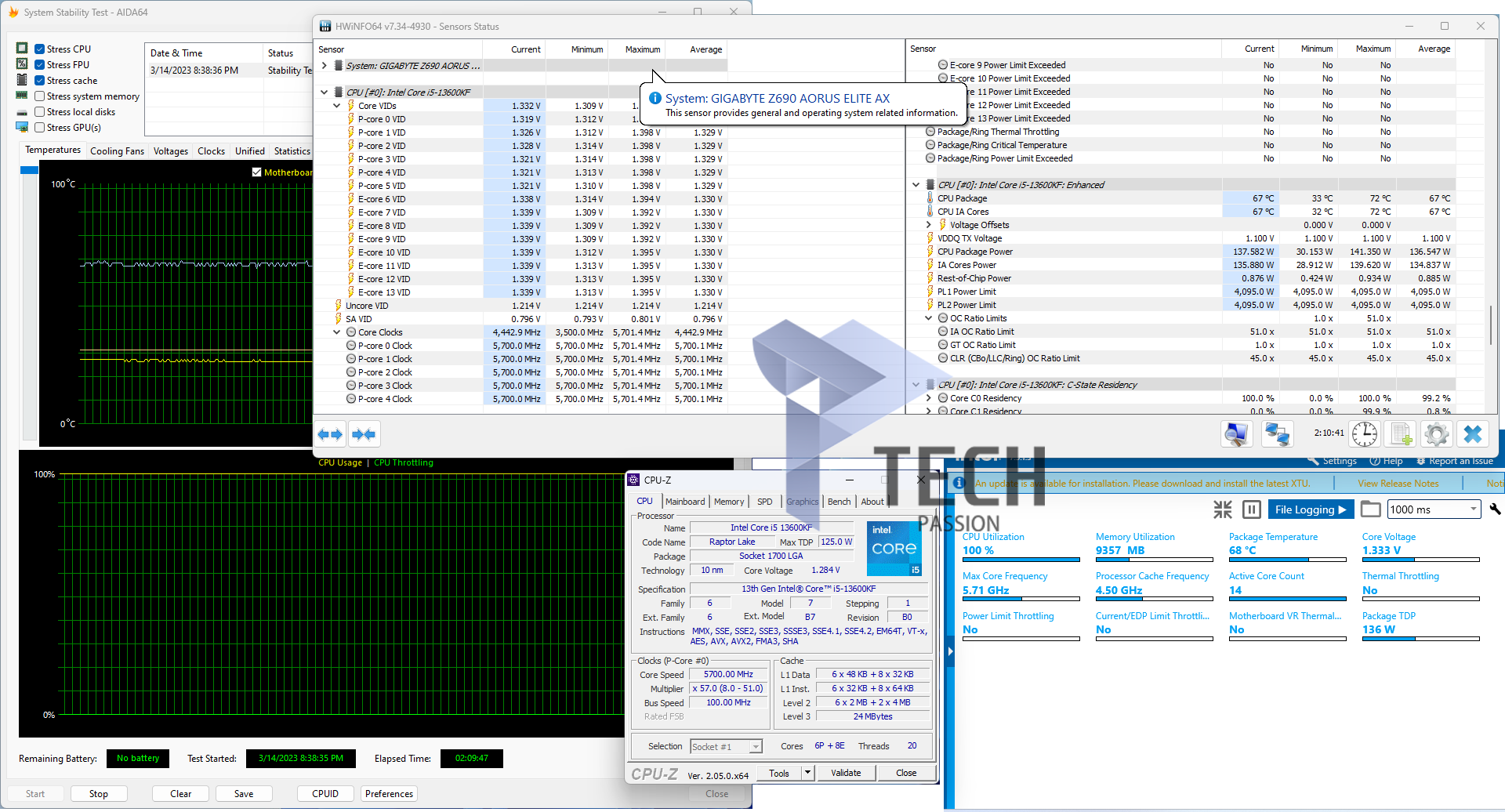 كانت نتيجة برنامج CINEBENCH R23 من حيث درجة الحرارة 64 درجة مع أداء البرنامج على الوضع الهادئ كان 23795، بينما باستخدام برنامج Clear Wave كانت الضوضاء 41dB، مع استخدام قدرة سحب طاقة أعلى و فولتية أعلى.