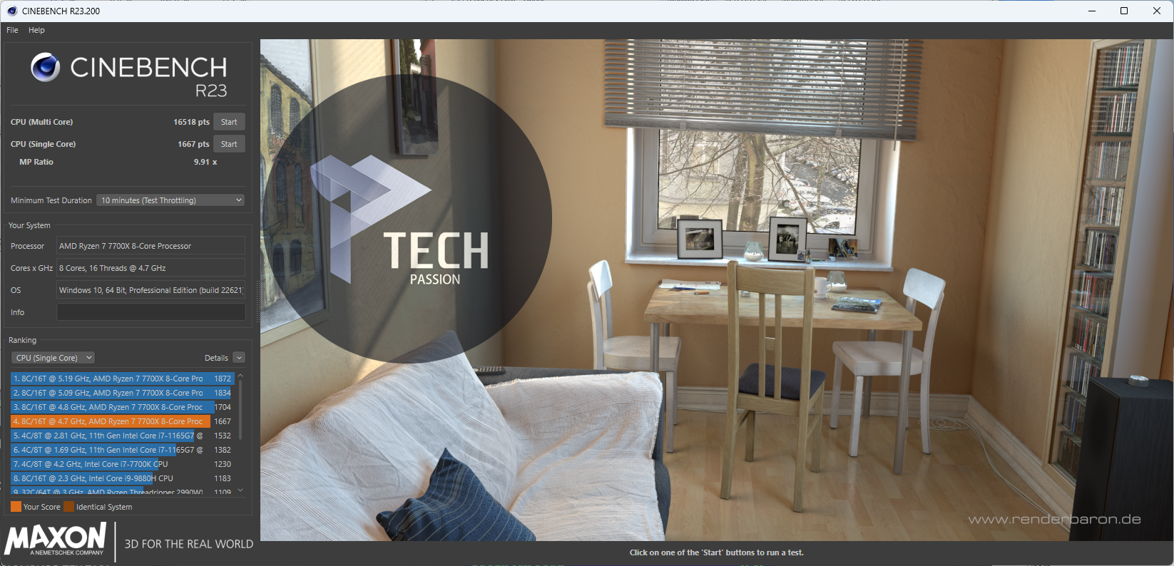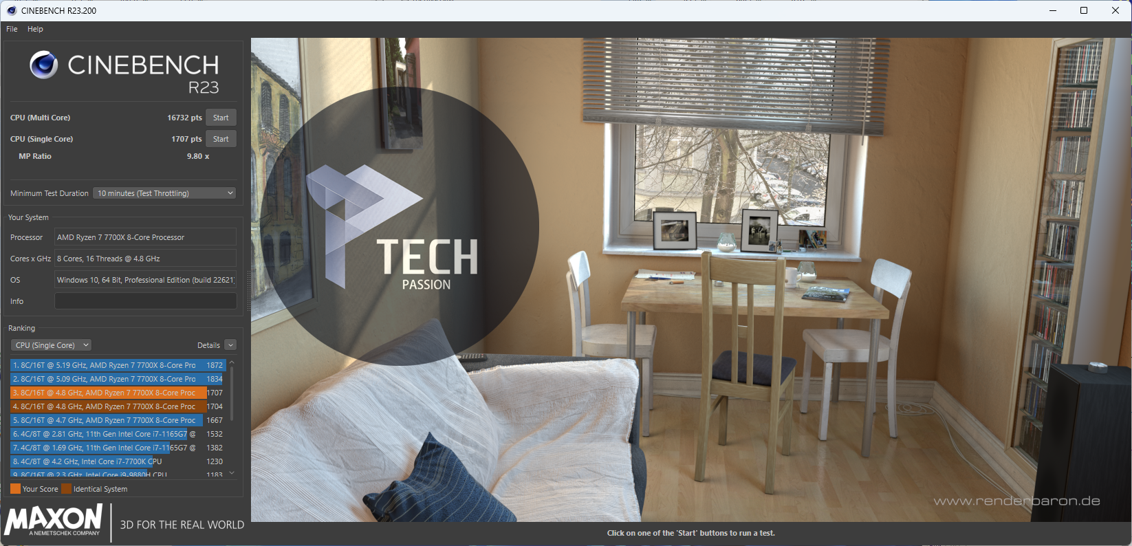 لا يمكن الاعتماد على الأداء الناتج من برنامج CINEBENCH R23 وذلك لأن البرنامج يتغير من ناتج إلى آخر بمعنى أوضح في حالة تشغيل جهاز الحاسوب ثم البدء في الاختبار سيكون هنالك أداء وعند الانتظار قليلا سيكون هناك ناتج آخر.
