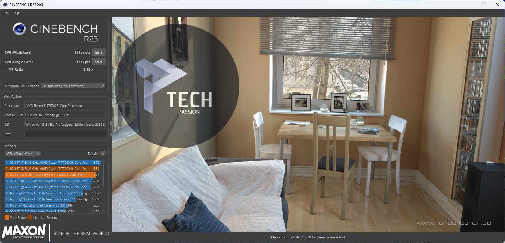 | 1775 | 1754 | أداء برنامج CINEBENCH R23 في حالة النواة الواحدة |