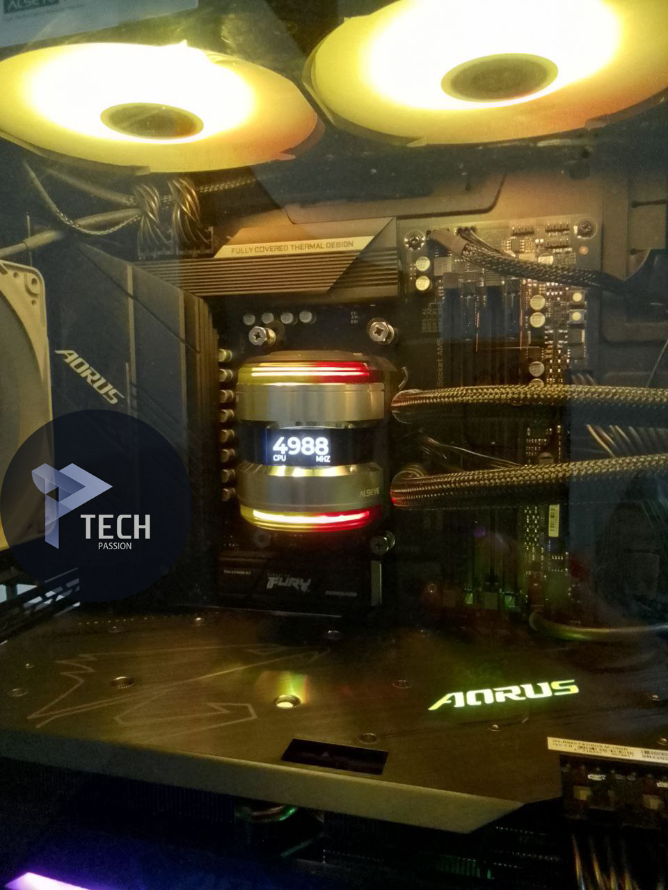 يتواجد أعلى الشريط الفضي الأول إضاءات ARGB وأيضا أسفل الشريط الثاني أيضا إضاءات ARGB.
