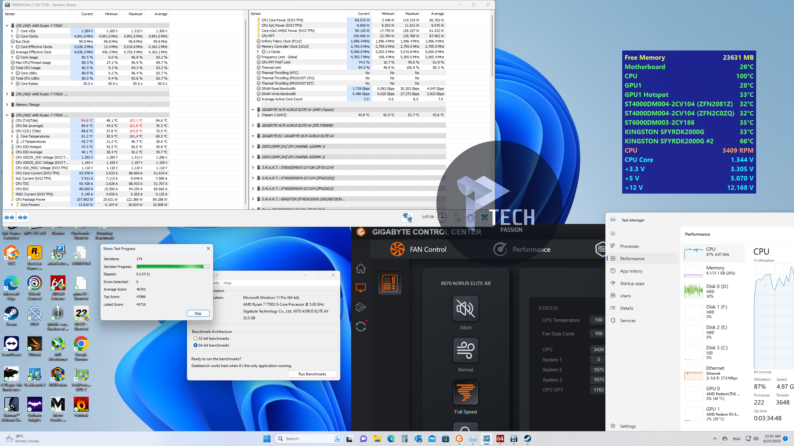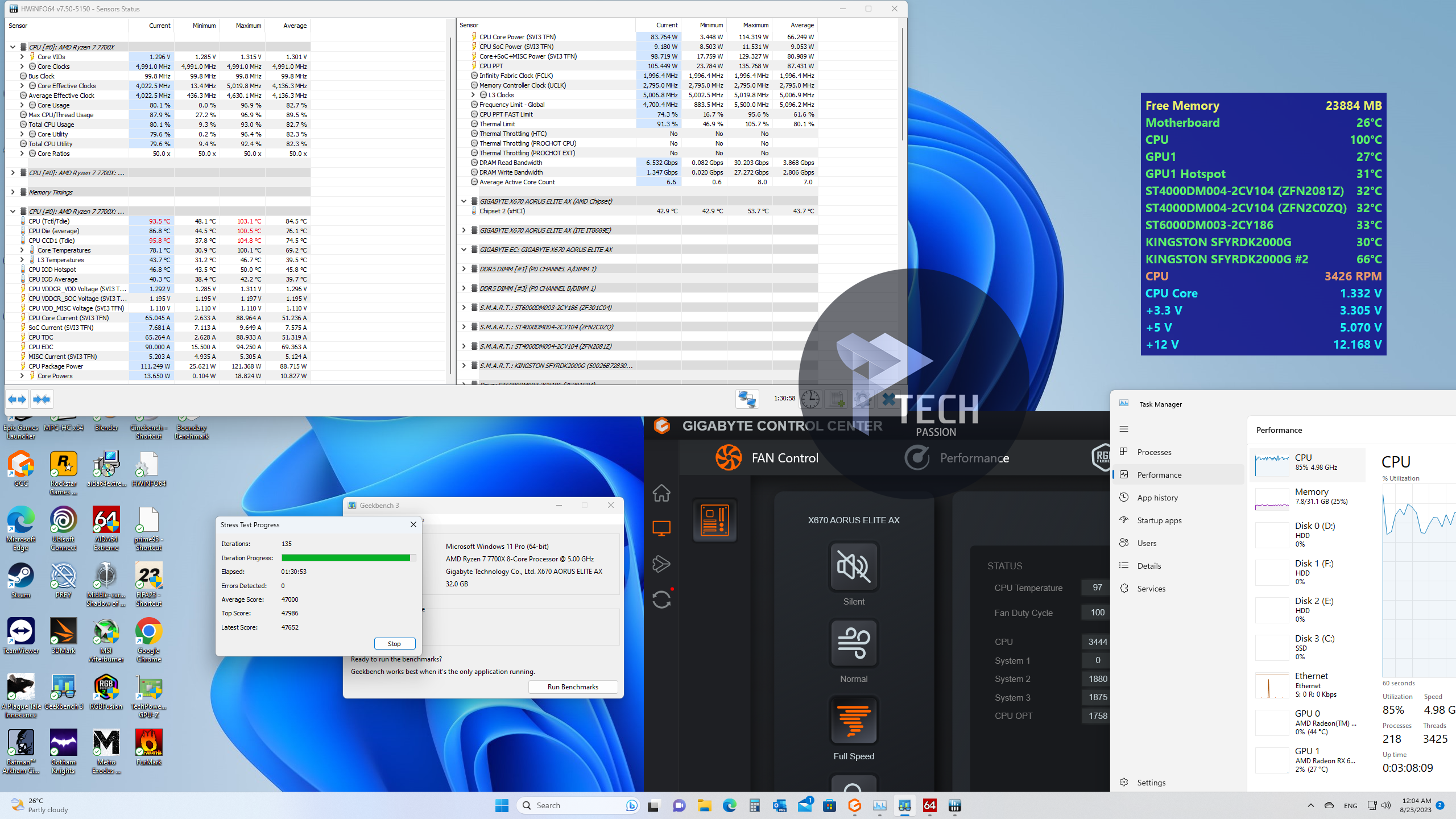 أقصى درجة حرارة خلال برنامج GeekBench 3 |