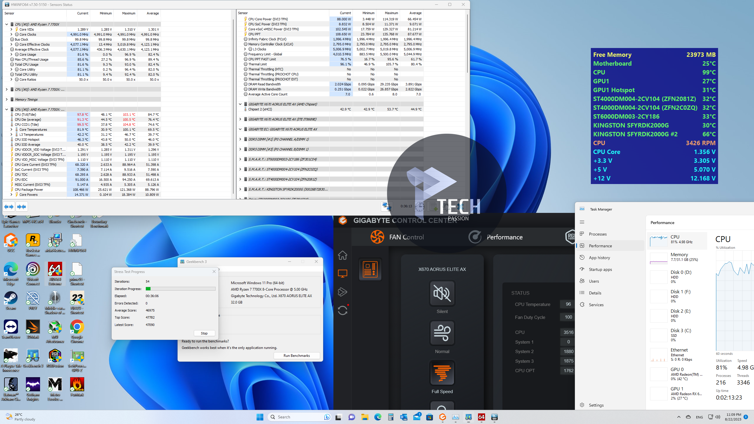- بالنسبة لي درجات حرارة مقبولة مع استمرارية اللعب لمدة ساعتين في فيفا 23 مع متوسط درجة حرارة 55 وأيضا لعبة CS:GO لمدة 3 ساعات مع متوسط درجة حرارة 60:63، (بدون تشغيل تكييف) وهذا ممتاز جدا.