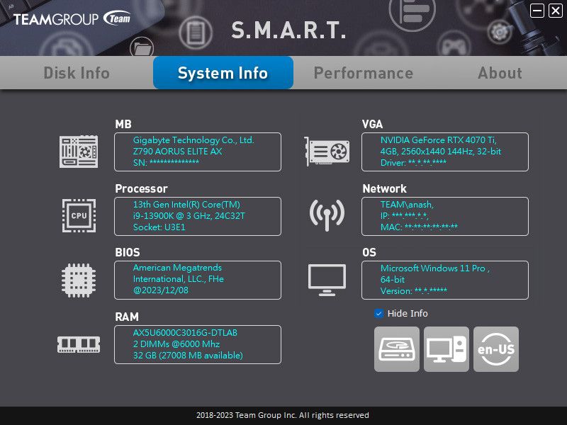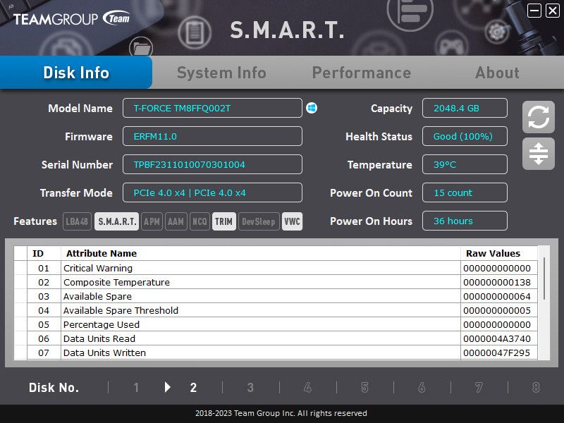 وعملت شركة Team Group على برنامج يدعى S.M.A.R.T. Monitoring System يعمل على إدارة حالة وحدة التخزين والتحكم في الاعدادات الخاصه به، مع إمكانية إجراء اختبار لقياس سرعة القراءة والكتابة من خلاله.