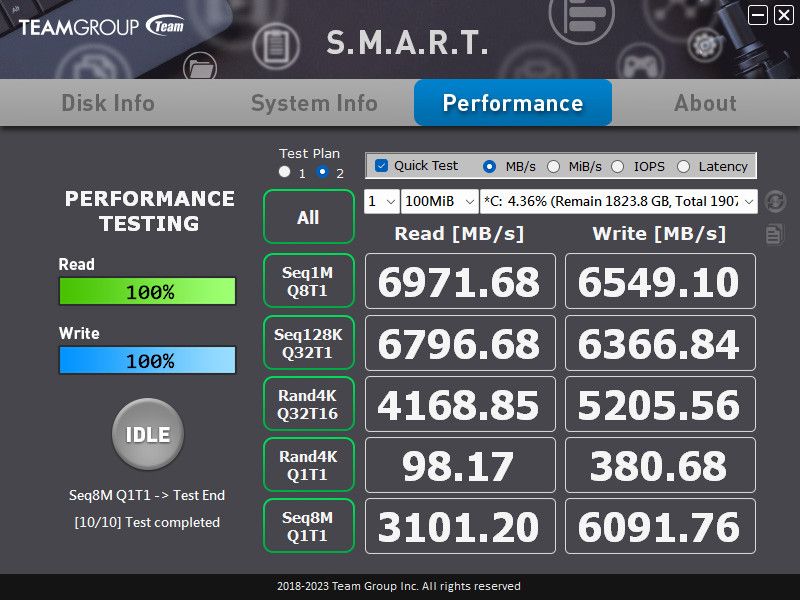 من خلال مراجعة وحدة التخزين T-Force A440 Lite قدم أداء مقارب إلى النتائج الواقعية التي أعلنت عنها شركة Team Group، بجانب تواجد مبرد صغير مصنوع من Graphene الذي تميز بـ المرونة مع سهولة التركيب، مع تواجد Graphene تبريد ممتاز جدا أثناء عملية الضغط على وحدة التخزين ولو تتعدى 70 درجة وهذا جيد جدا ومع تركيب وحدة التبريد الأخرى الخاصه بـ اللوحة الأم كانت درجة الحرارة 55 درجة أثناء عملية الضغط.